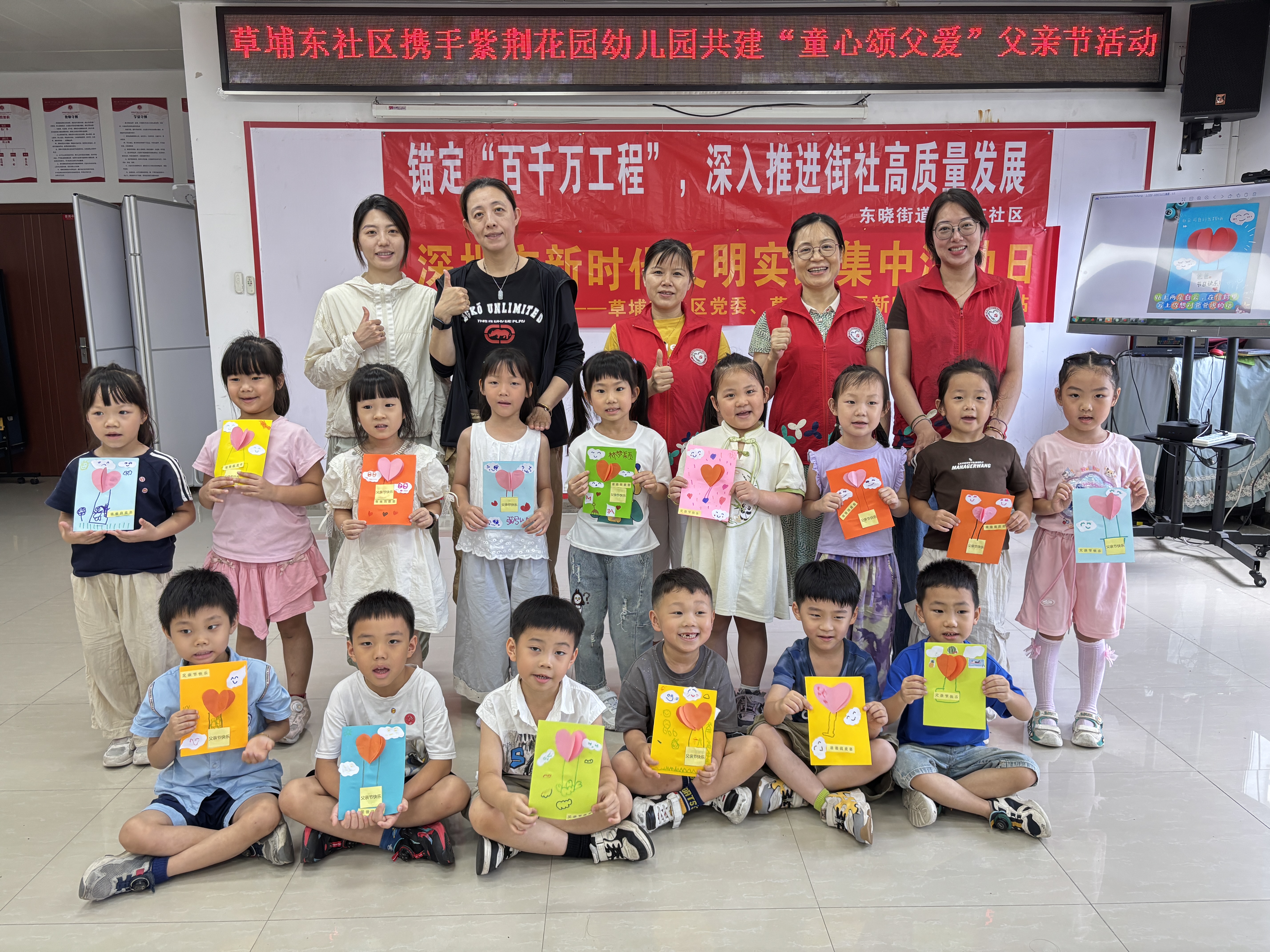 为贯彻落实 “百千万工程” 发展,促进社区文化建设与未成年人思想道德培养,6 月 12 日上午,草埔东社区联合罗湖区紫荆花园幼儿园开展了一场温馨而有意义的 “童心颂父爱” 父亲节活动,为社区内的孩子们提供了一个表达对父亲感恩与爱意的平台,20多名师生参加了活动。