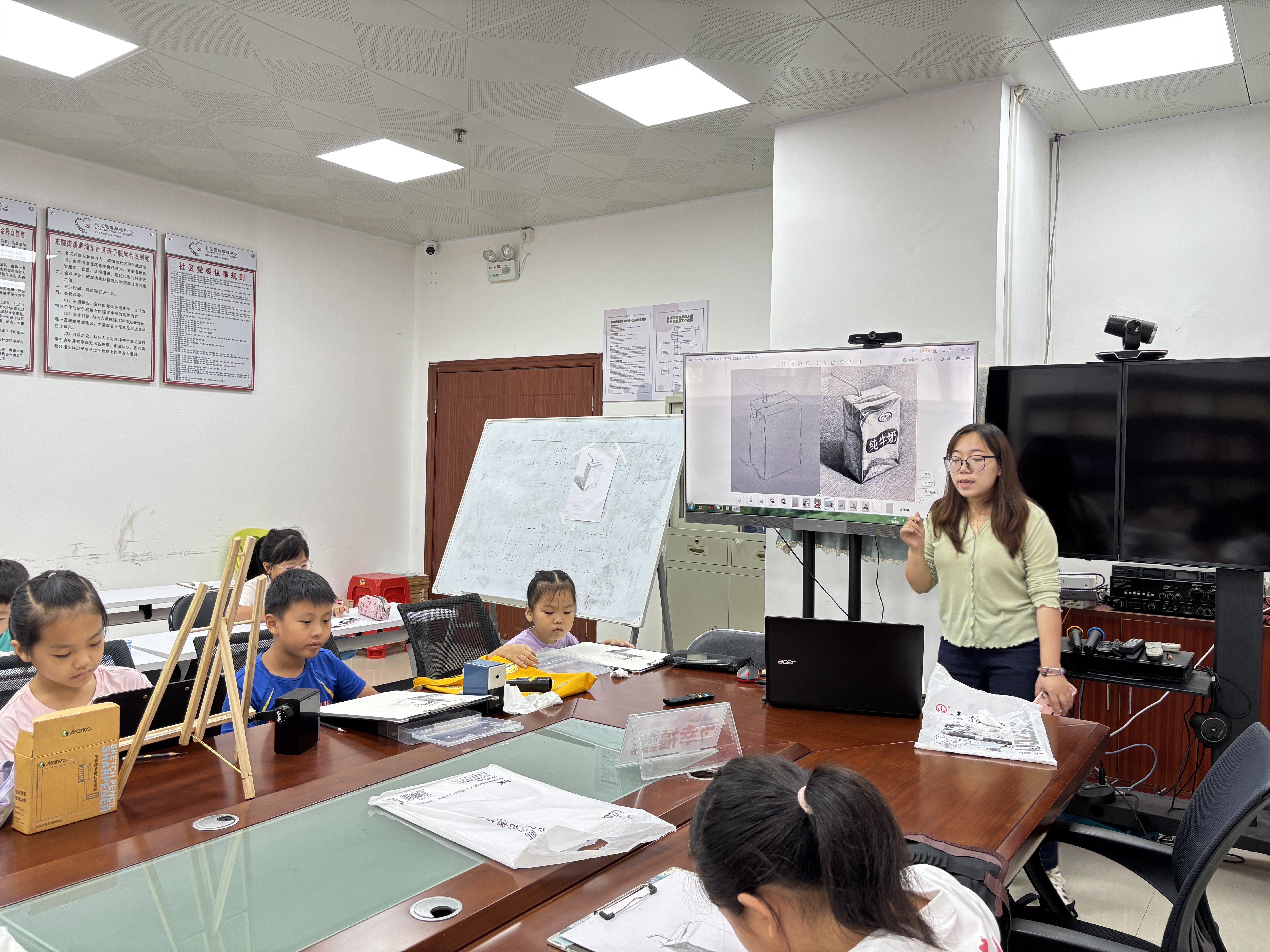 7月23日上午,草埔东社区 “黑白印象” 少儿素描学习营落幕。作为社区贯彻 “百千万工程” 的实践,8 节课里 20 余名青少年从画正方体起步,终能勾勒水果和其他静物,完成艺术蜕变。开营时,超半数外来劳务工子女是首次接触素描,有人握笔发颤、对着范本发愁。8 岁的外来务工子女林同学说:“第一节课画正方体总画歪,能来这儿和伙伴一起画很开心。” 后来,教室灯光常为孩子们多亮一小时,有人请教修改,有人留堂练习,住得最远的外来务工子女小张从未迟到。