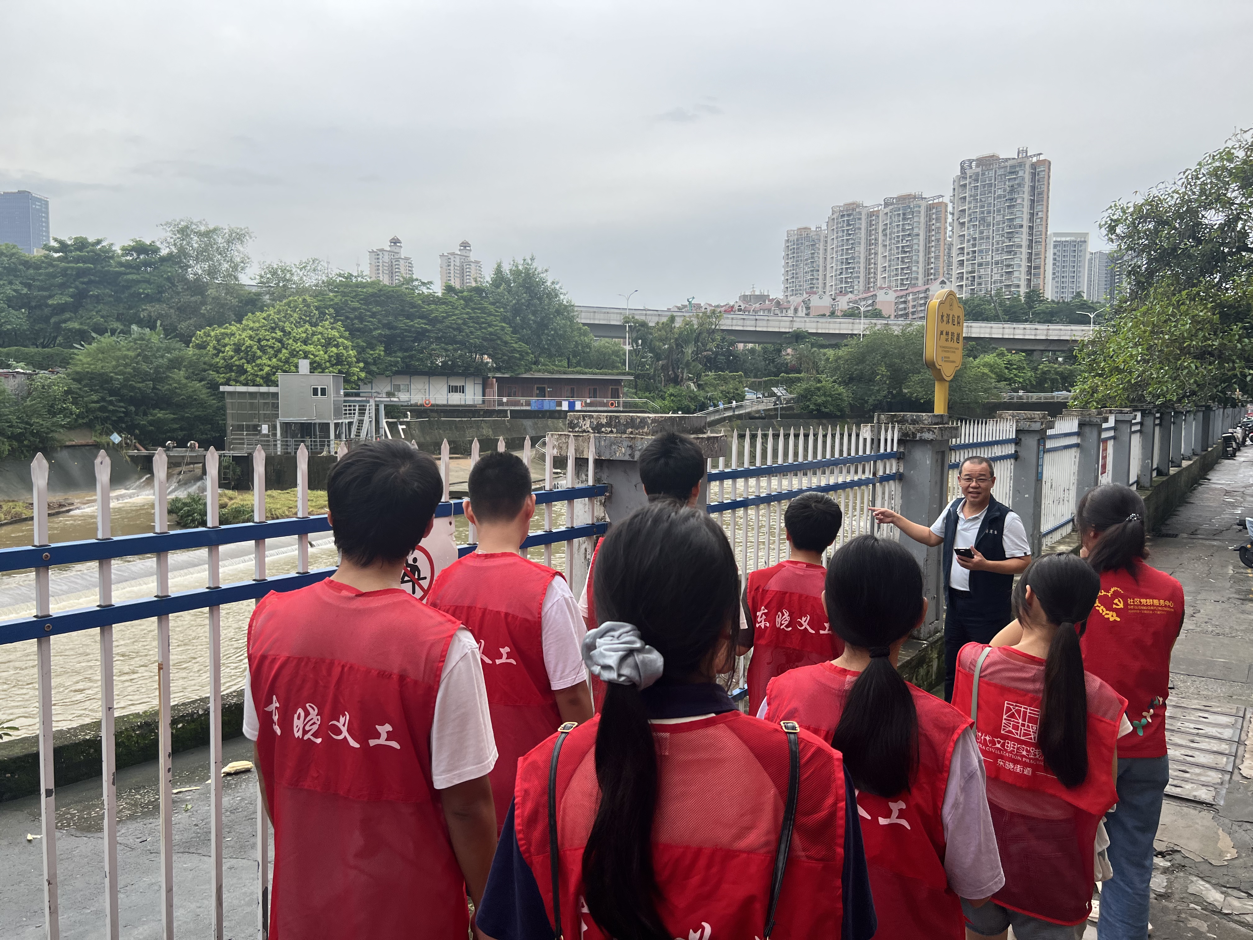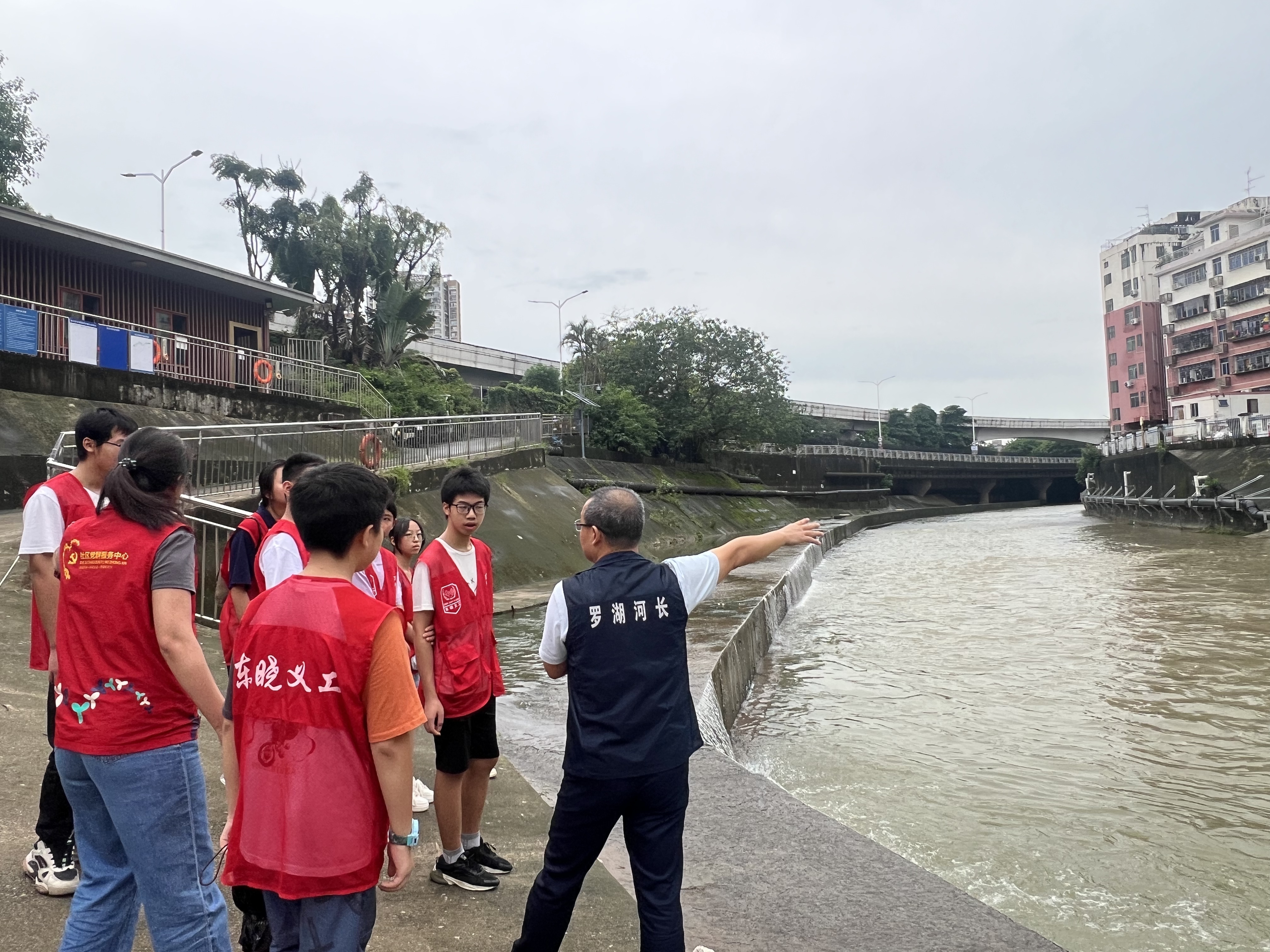 活动当日,青少年志愿者红马甲的鲜亮色彩,在河岸沿线铺展开来,宛如一道道流动的生态宣传标语。张书记作为 “河长制” 一线践行者,率先统筹全局立足 “河长制” 工作架构,精准拆解巡河任务,将守护河道的责任网络细密编织进青春力量方阵,同时向大家强调:“保护河道不是一句口号,而是要像爱护自己的眼睛一样,时刻关注它的点滴变化,这是我们每个生活在这片土地上的人应有的生态自觉。” 行进至草埔东河段,他开启 “历史 + 实践” 双课堂:回溯九十年代后期布吉河改造历程,讲解回迁房叠加形成暗河给暴雨期防水排涝带来的严峻挑战,更着重强调特殊天气水位监测的 “刚性要求”,“这不仅是守护民生安全,更是守护河道的生态平衡,一旦水位失控,周边的植被、水生生物都会受到影响,进而破坏整个生态链。” 他的话语让青少年们明白,河长与志愿者都是河道生态的守护者,而青少年志愿者更是协助河长延伸治理触角、筑牢生态底线的 “青春合伙人”。