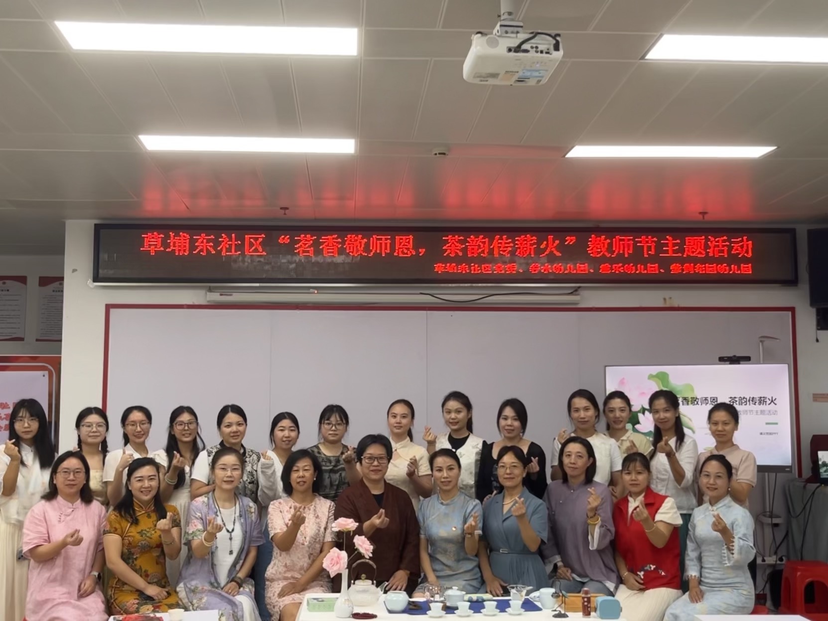 秋韵渐浓,师恩难忘。为响应“百千万工程”丰富基层文化生活的号召,在草埔东社区党委领导下,9月9日上午,草埔东社区联合芳花茶艺、若水幼儿园、雅乐幼儿园及紫荆花幼儿园共同举办“茗香敬师恩,茶韵传薪火”教师节主题活动,以茶为媒、以乐相伴,向一线教育工作者致以节日问候和崇高敬意。