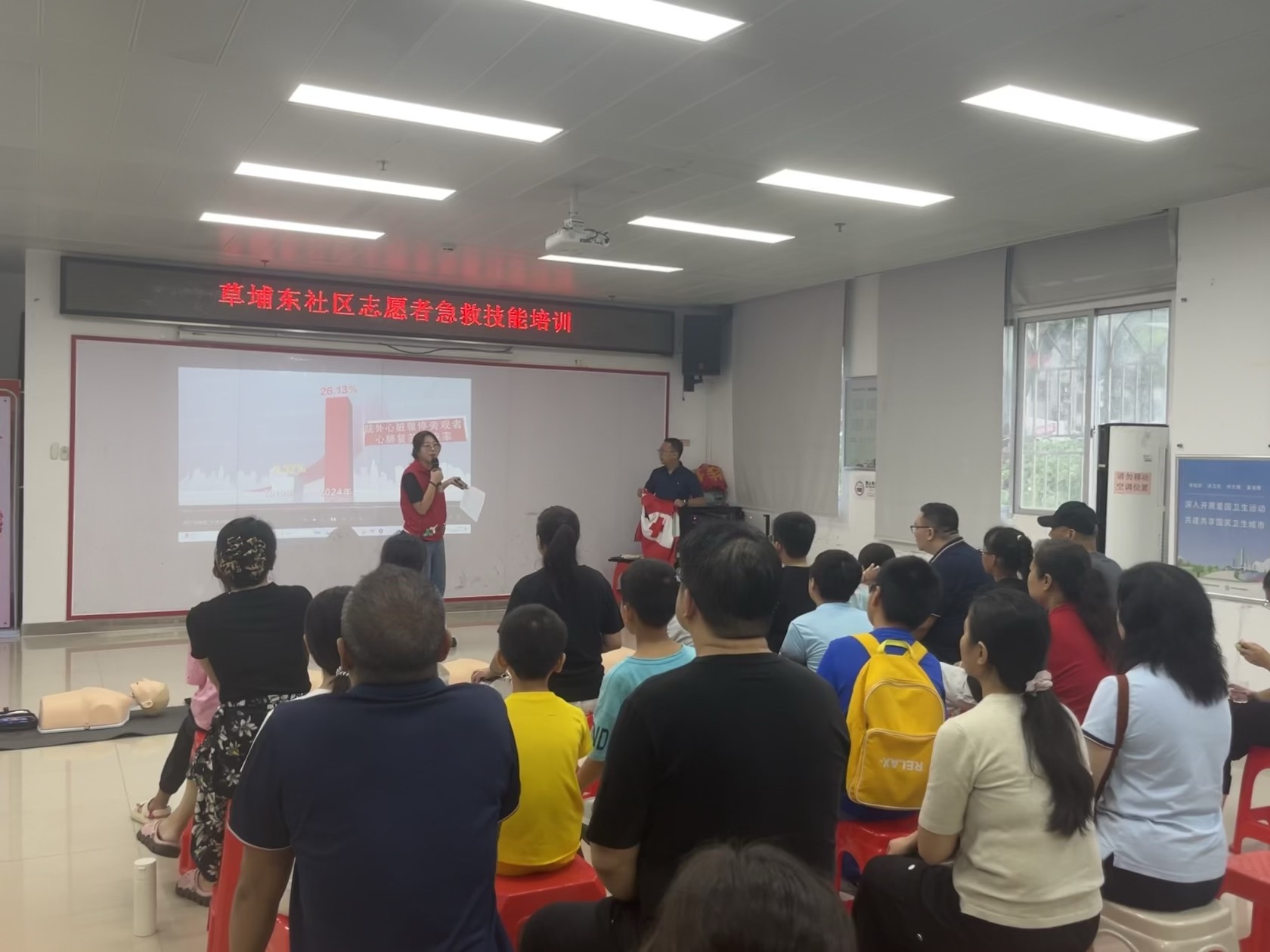 深圳市红十字会,为社区志愿者量身打造了一场专业且实用的急救技能培训活动。本次活动共吸引了45名包括成人及青少年在内的“大小志愿者”踊跃参与,现场学习氛围热烈,取得了显著成效。