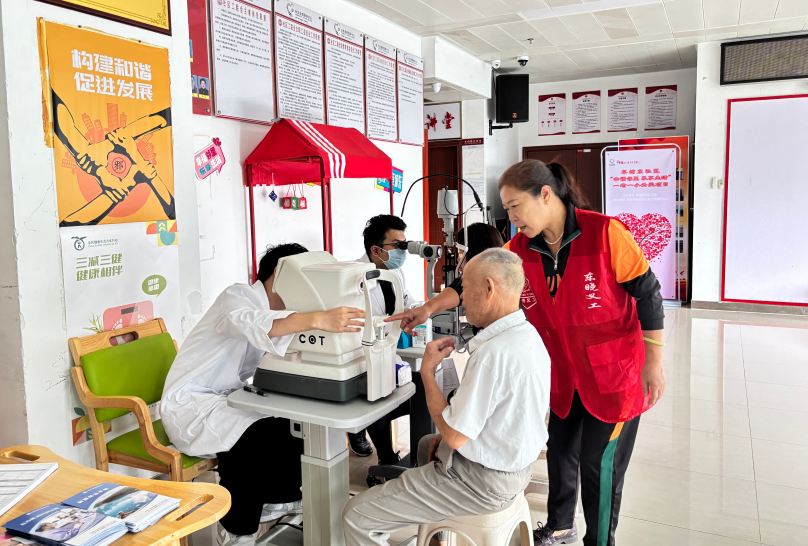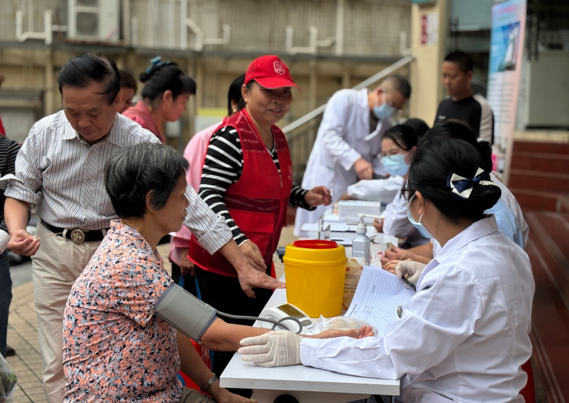 活动当日,人头攒动,暖意融融。草埔东社区社康及专业的医疗团队早早准备就绪,为闻讯前来的社区中老年人提供了一系列免费且贴心的健康服务。首先,草埔东社区社工向居民说明活动目的意及义诊便服的内容后,义诊区内,血压测量、血糖监测、视力检测、口腔检查等摊位前排起了有序的队伍,医护人员耐心细致地为每一位长者进行检查,并就中老年人普遍关心的慢性病预防、日常保健等身心健康问题提供了专业的咨询和指导。“阿姨,您的血压稍微有点高,平时饮食要注意清淡一些。”医生亲切的叮嘱让前来检查的张阿姨倍感温暖,“社区把服务送到楼下,太方便我们这些腿脚不便的老人家了,心里觉得特别暖。”