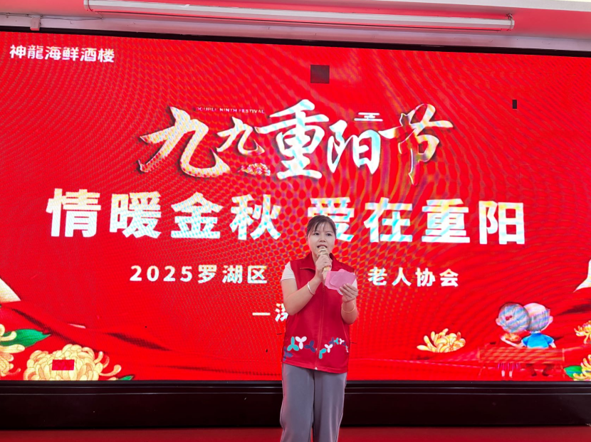 活动伊始,草埔东社区党群服务中心黄主任上台为现场老人致以节日致辞。她表示,老年群体是社区发展的见证者与贡献者,关爱老人是社区工作的重要职责,此次活动既是重阳节的传统致敬,更是 “百千万工程” 落地社区、服务群众的具体体现,未来社区将持续搭建暖心平台,让老年朋友共享社区发展成果。黄主任的话语质朴真诚,瞬间拉近了与在场老人的距离,现场掌声阵阵。