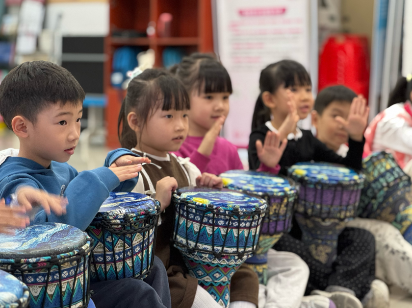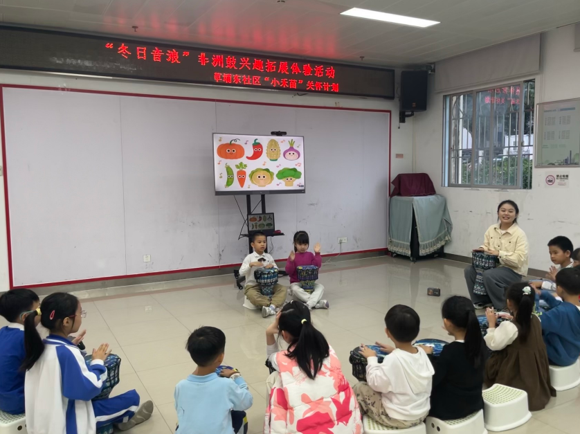 草埔东社区“冬日音浪”非洲鼓点叩响童心