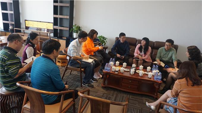 2019年2月21日下午,东晓街道党工委副书记杨映玫、党工委委员陈彦群、曹烨、办事处副主任陶伟平等一行到IBC泛时尚珠宝总部大厦调研党建工作。