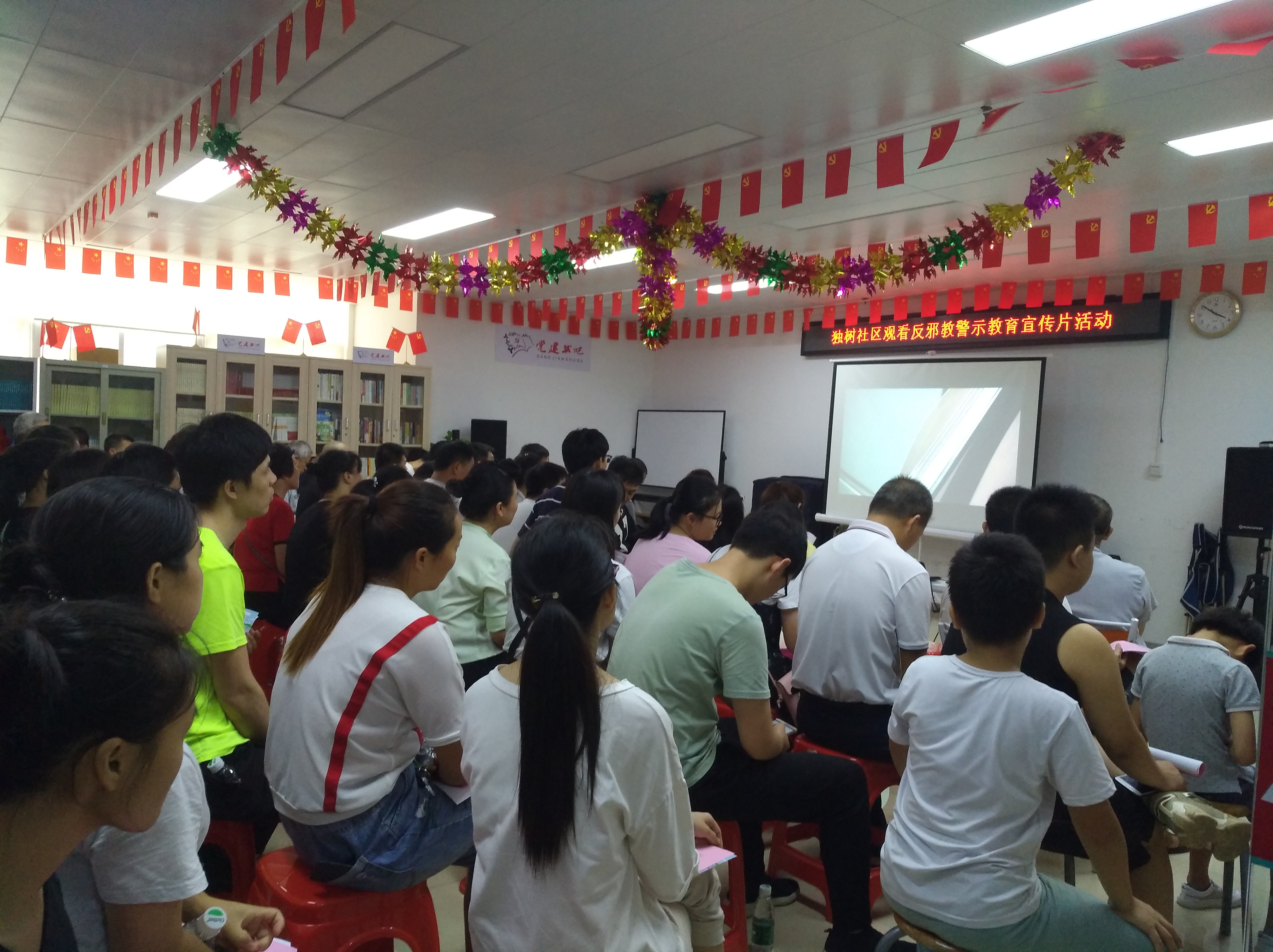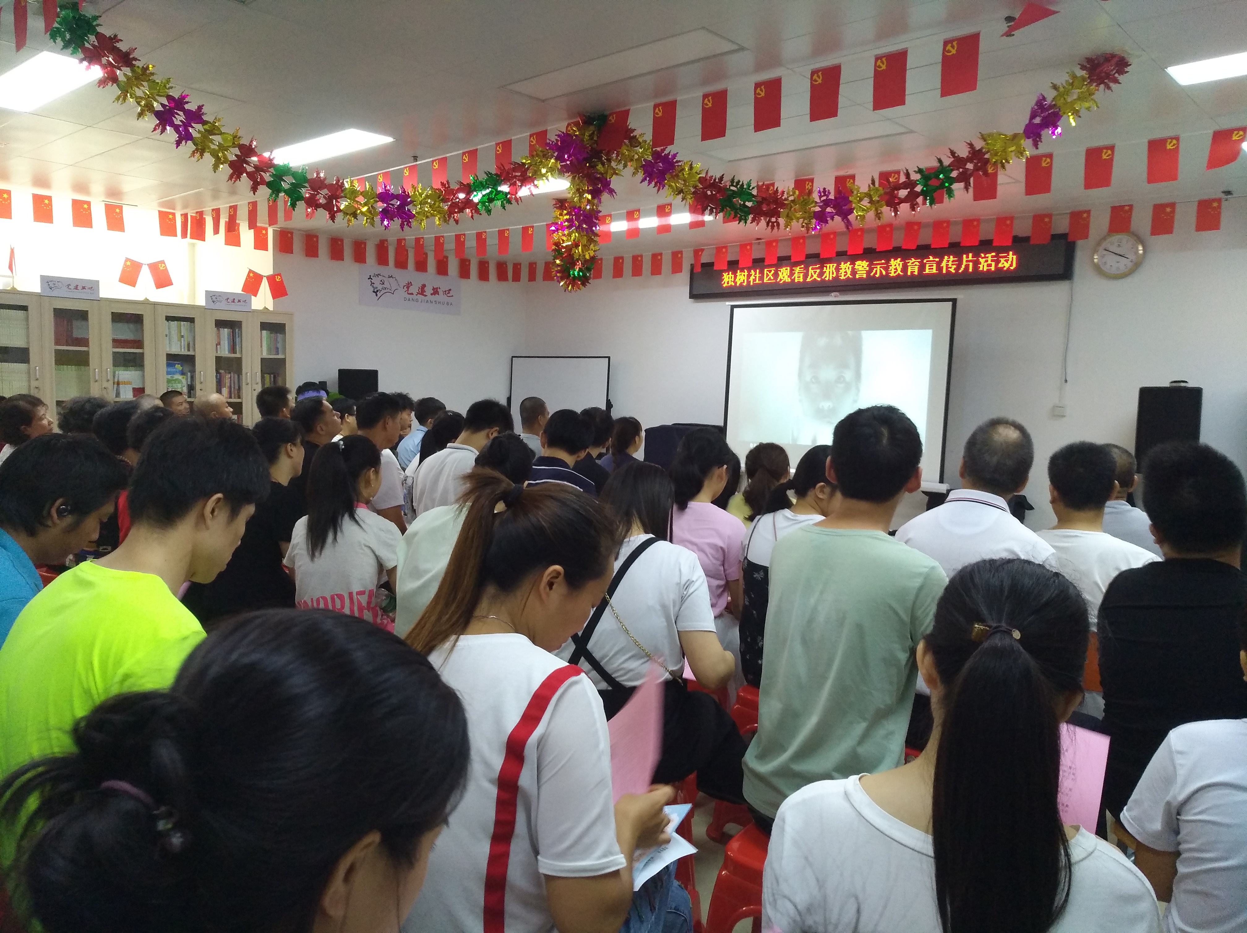 罗湖家园网讯:为不断增强社区居民对邪教罪恶本质的认识,进一步加强自觉抵御邪教侵蚀的能力,7月23日下午独树社区组织辖区居民们观看反邪教警示教育宣传片。独树社区利用宣传栏张贴崇尚科学、珍惜生命、关爱家庭、拒绝邪教系列宣传画。同时也希望社区居民们主动参与到反邪教宣传的行动中来,引导更多的人认清邪教的本质,增强抵御邪教的能力。