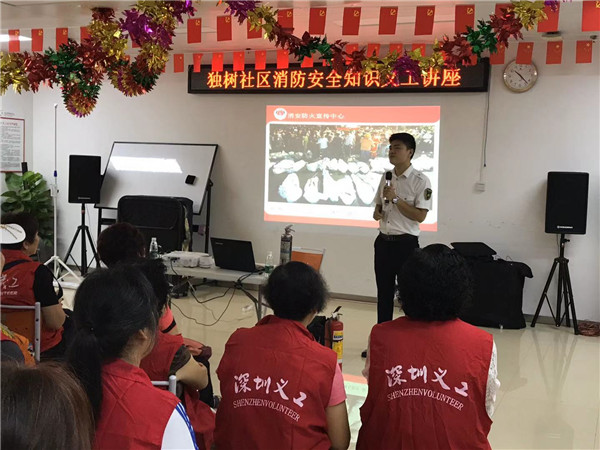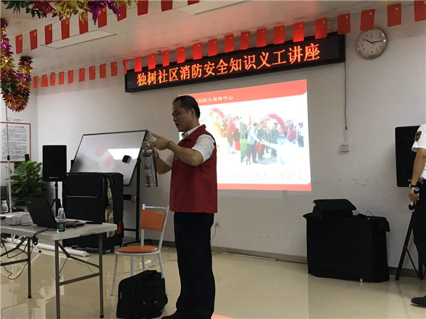 本次讲座邀请了深圳消安防火中心的专业教员来给居民有权威且生动的讲解了消防安全知识。在讲座过程中,消防教员通过图片和视频向居民展现火灾的可怕之处,让居民认识火灾对人的财产、生命和未来会造成破坏性的伤害。接着讲解了人在面对火灾时正确的处理方式以及改正过往错误的方式,让居民明白过往学习到处理火灾的方式,例如用水沙扑火、湿手巾捂鼻子和湿棉被盖身子等实际上并不实用,最好的方式是在火灾起火时用灭火器,逃离火灾用防毒面罩。最后向居民介绍了新型的消防用品,让居民认识到新型消防用品的作用和使用方法。