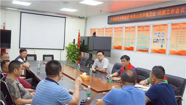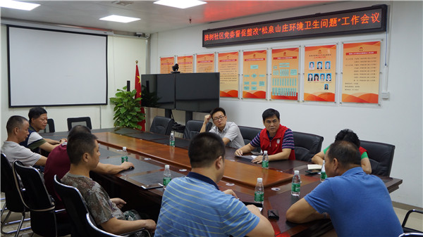 罗湖家园网讯:2019年10月9日下午独树社区党委召开督促整改“松泉山庄环境卫生问题”工作会议,会议由独树社区党委书记陈笔锋主持,东晓街道党工委委员、独树社区第一书记曹烨,独树社区党委副书记朱又红,深圳市大地通物业管理有限公司党支部党员、公司管理人员等参加了会议。