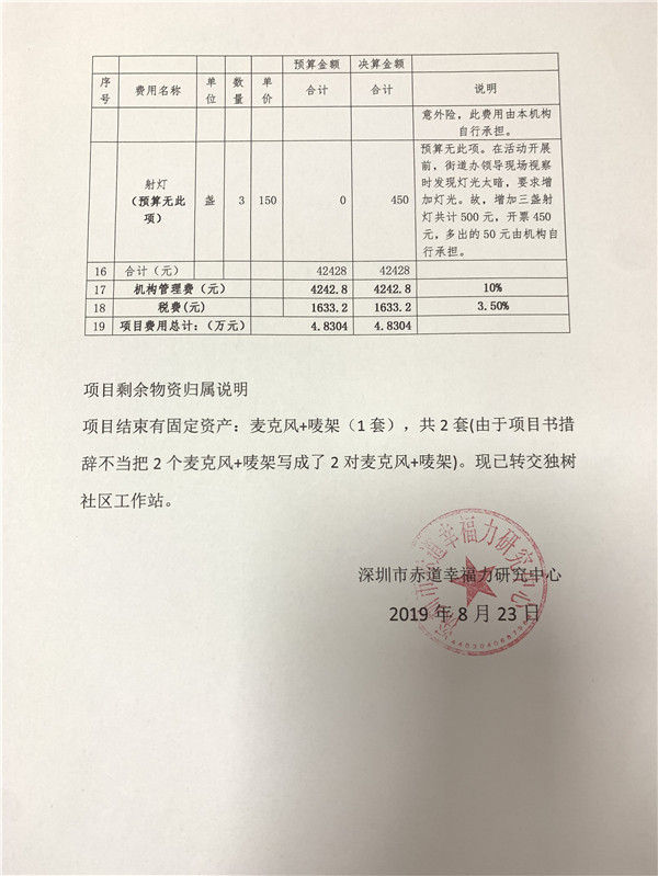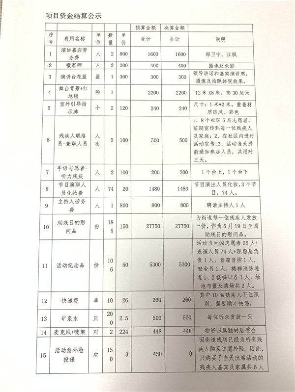 民生微实事“爱在东晓--5.19全国助残日主题活动(身残志坚事迹报告会)”财务公示
