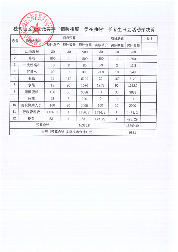 “情暖相聚,爱在独树”独树社区民生微实事长者生日会预决算公示