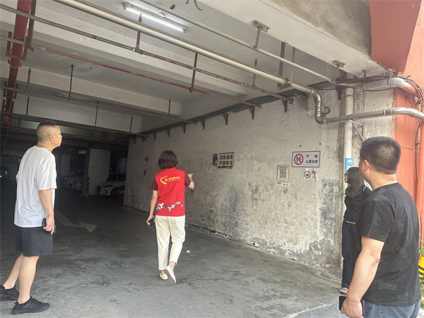 社区工作人员巡查大地花园停车场