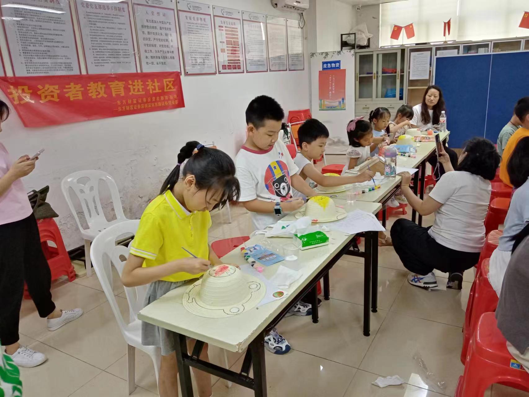 罗湖家园网讯:为深入贯彻“百千万工程”部署,培养青少年正确理财意识,6月8日上午,独树社区党群服务联合东方财富证券开展了“探金钱本源,筑理财认知”金融知识小讲堂。授课老师用生动的语言深入浅出地为青少年们介绍金钱的起源,理财的意义,投资的风险,以及反诈骗知识。随后由社工引导小朋友完成手绘草帽的创作,让小朋友们自由发挥想象力,手绘自己的草帽,令小朋友们开心不已。