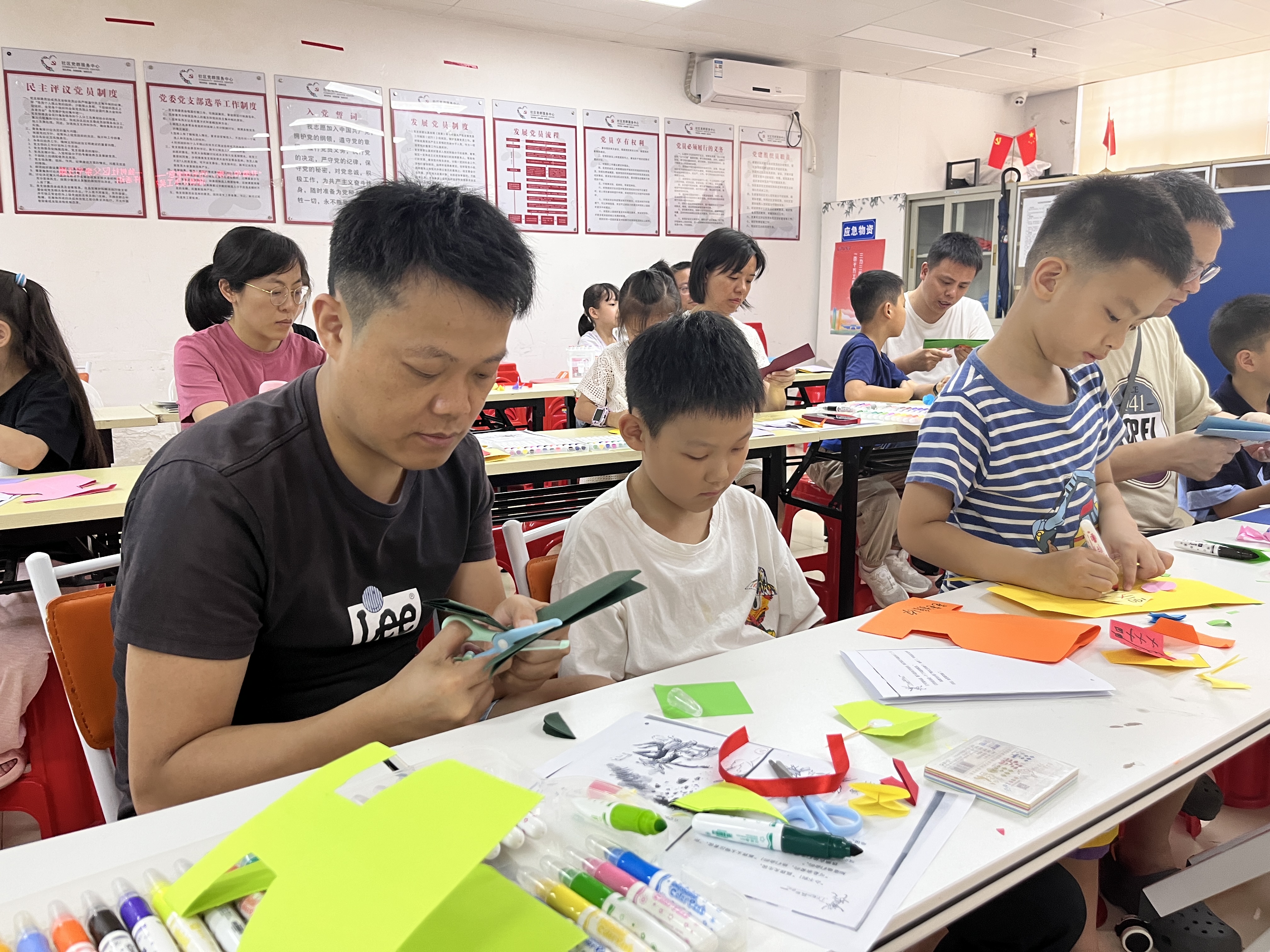 罗湖家园网讯:6月15日,在父亲节来临之际,东晓街道独树社区党群服务中心立足“百县千镇万村高质量发展工程”要求,整合多方资源,策划开展了“书香传父爱,巧手颂亲恩”父亲节主题活动。活动通过亲子共读绘本《了不起的狐狸爸爸》与手工制作“父爱勋章”,引导家庭成员在互动中感悟亲情,传递感恩之心,进一步营造社区和谐家庭氛围。