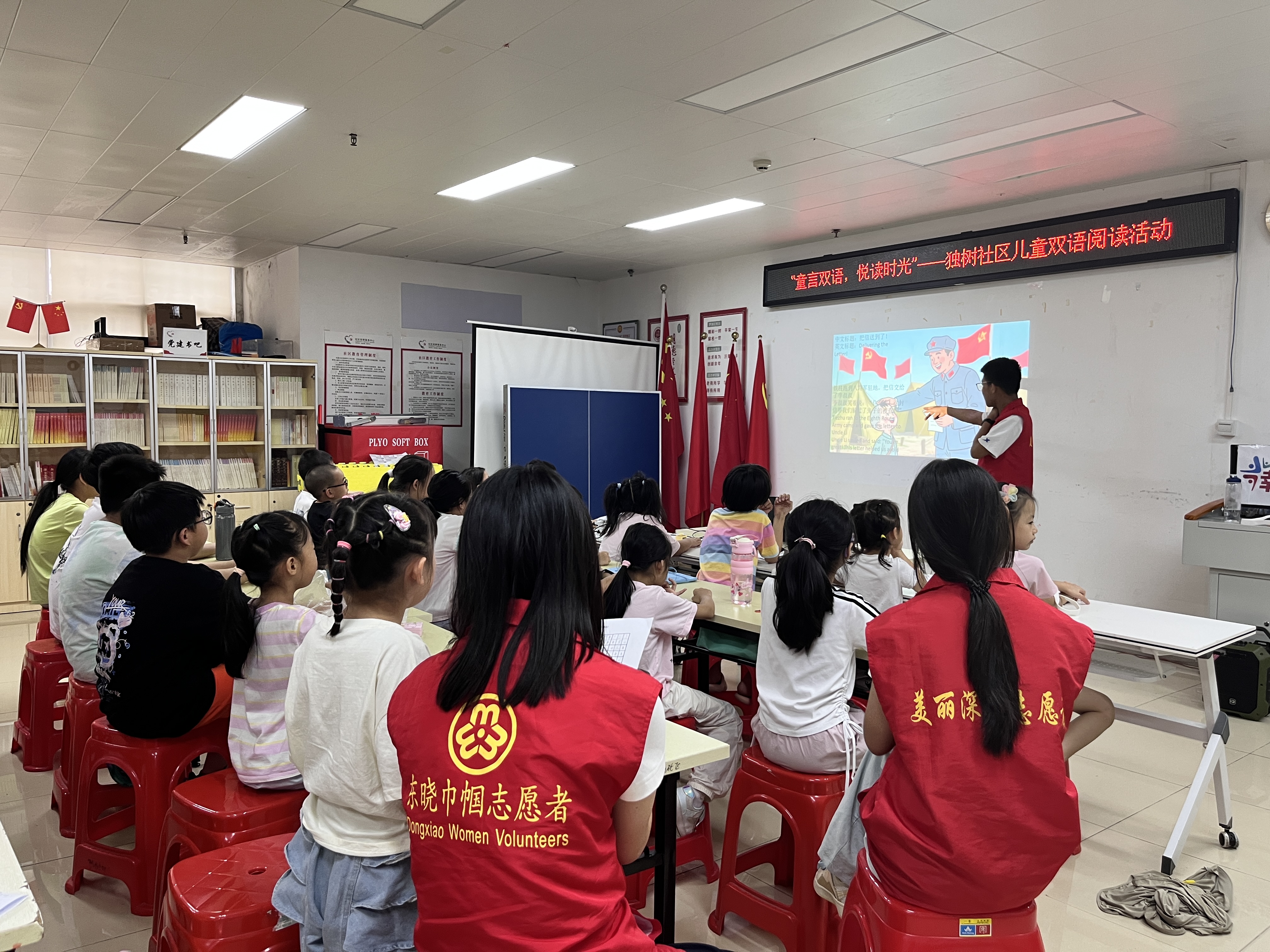 罗湖家园网讯:7月28日,独树社区开展了一场“童言双语,悦读时光”双语阅读活动。活动现场,志愿者生动地讲解了“小交通员铁柱”的故事,以此激发孩子们的兴趣。随后,孩子们交替阅读中英双语绘本,在志愿者的指导下学习自然拼读。轻松愉快的氛围中,孩子们的语言感知力与阅读兴趣得到了显著提升。此次活动不仅丰富了孩子们的暑期生活,还为社区青少年搭建了一个交流学习的平台。孩子们积极参与,笑声不断,对这项活动喜爱有加。相信在这样的活动中,孩子们会在知识的海洋里畅游,收获更多成长与快乐。