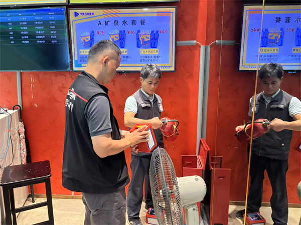 社区工作人员巡查水贝珠宝总部大厦中影万友影城