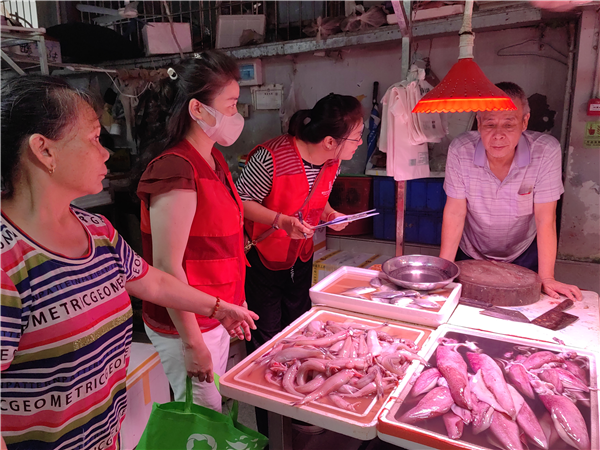 近日,罗湖区东晓街道兰花社区党群服务中心社工在社区党委的统筹与支持下,带领11名社区青年志愿者来到深圳“菜篮子”的新翠苑市场、海鲜市场、丰湖果蔬市场和干货市场开展“服务民生 爱在兰花”兰花社区青年志愿者实践活动。活动由青年志愿者对市场个体经营者进行面对面访谈。