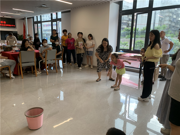 大家一边吃着自己亲手制作的香甜巧果,一边在社工的引导下玩起了“七夕知多少”问答、击鼓传花、礼乐投壶等别具一格的国风游戏,有趣的问答内容使得现场人员忍俊不禁,哈哈大笑;挑战性较强的击鼓传花、礼乐投壶活动时不时传来大家的阵阵喝彩声,使得整个活动室欢声雷动、热闹非凡。