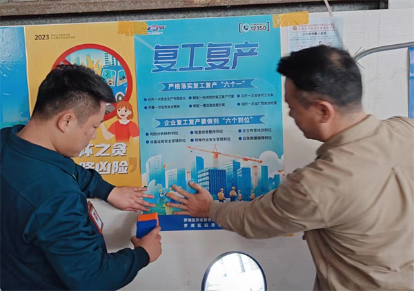 街道以创新宣传方式,优化宣传内容,提高宣传品质为目标,持续做好宣传进社区、进企业等系列宣传活动。组织各社区工作站在辖区重点区域张贴复工复产宣传海报,督促企业、工地严格执行复工复产“六个一”;充分利用微信等线上媒介转发复工复产注意事项和温馨提示,帮助物业管理服务企业拓宽安全知识宽度,进一步树牢安全意识,加强安全防范。