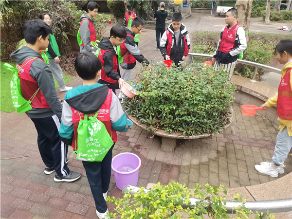 此外,松泉社区新时代文明实践站联合松泉社区少工委在鹿鸣园小区花园内开展了“与‘泥’同行,‘浇’个朋友”植树节主题活动。工作人员首先向青少年们介绍了植树节的由来和意义,以及活动注意事项。随后,青少年们分成几个小组,各自负责一个区域。他们有的负责倡导宣传、有的负责树木挂牌、有的负责花草浇水,大家齐心协力,共同完成了本次小区护绿任务。