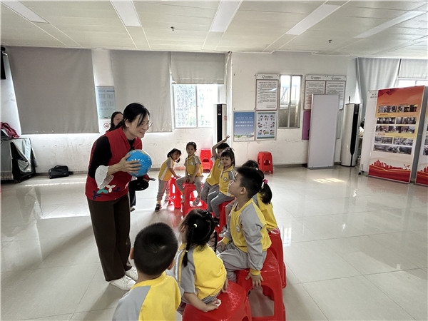 活动现场,社工带领孩子们观看企鹅在冰川大陆上快乐嬉戏的视频,紧接着用绘本《美丽的地球》,给孩子们讲述企鹅大家庭因全球变暖不得不搬家的故事,它们走遍大江南北,却找不到可以住的地方,美丽的地球和受到破坏的地球形成鲜明对比,绘本用无声的语言警醒着地球环境日益恶劣,激发着孩子们爱护地球的意识。