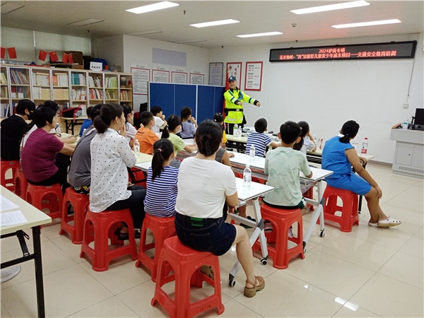 8月17日,兰花社区联合罗湖区东湖交警中队开展交通安全教育宣传活动,借助剧本推理游戏为辖区儿童青少年及家长上了一堂生动有趣的交通安全课。活动现场,东湖交警中队戚警官为孩子们科普最基本的交通安全知识,讲解过马路注意事项、骑电动自行车佩戴头盔的重要性,以及大车存在盲区等安全知识,强调禁止在马路上追逐打闹、要严格遵循交通指示灯等,并通过现场提问抢答的方式,加深孩子们的交通安全意识。