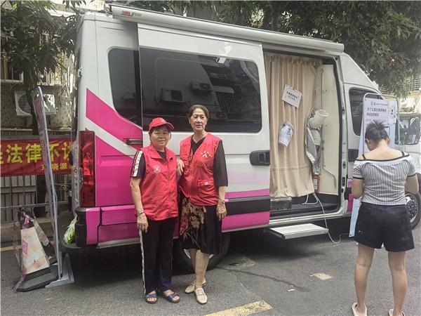 移动筛查车开进社区,方便居民群众下楼就可以进行筛查。志愿者们引导前来进行筛查的妇女有序登记个人信息,并依次进行检查。医务工作者为妇女进行细致地检查,耐心讲解预防乳腺癌、宫颈癌以及常见的疑难杂症的要点和方法等,让她们对“两癌”知识及筛查有更加直观、深刻的了解,增强“两癌”早诊早治的健康意识,提高她们的自我防护意识。