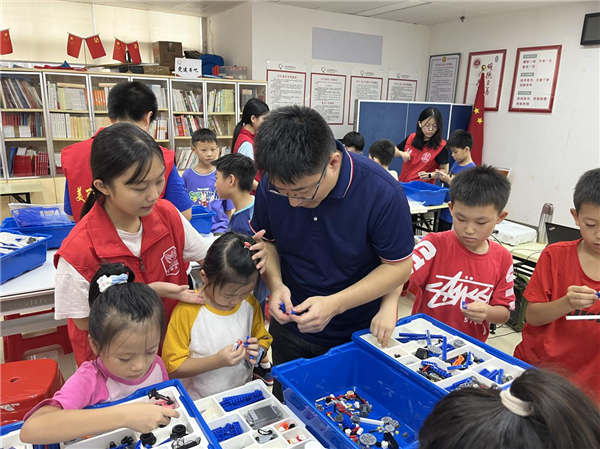 科学成长探索活动中,拆解和组装还原电风扇,了解机械与电力基础知识;构建固定车身、使用轴和轴套等实践操作拼装小汽车;学习手弩相关知识,深入了解古人的“射”技和智慧;创意设计和改造电钻小车,了解电动钻孔机的发展历程和用途等;在搭建压路机模型游戏中,学习和了解压路机的功能和结构等......教学老师和社区工作人员引导儿童青少年发挥奇思妙想,带领孩子探索机械和科学知识,激发他们的探索热情,培养创新思维提高动手能力。