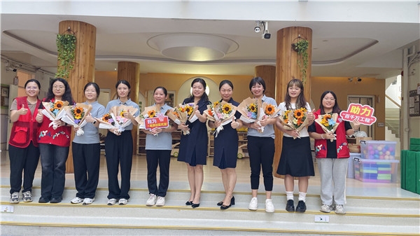 2024年9月10日,兰花社区开展教师节共建活动,8名社区工作人员和12名义工一起为26位教师送去亲手制作的手工花束。