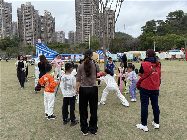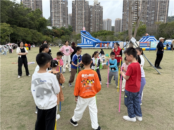 在游戏环节,工作人员给孩子们分发哪吒、敖丙等主题风筝,引导亲子家庭们一起放风筝,让亲子间的默契与情感联系进一步加深。活动还精心安排了“不倒森林”亲子游戏。家长与孩子组队参与,协作配合,挑战保持平衡。在游戏的过程中,大人们找回了久违的童真与快乐,孩子们也结识了新朋友,拓宽了社交圈子。