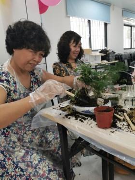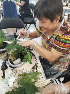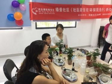 为了带动居民们对垃圾分类问题的思考,告诉大家分类是可持续性的工程,垃圾可以资源回收,垃圾可以变废为宝,在活动最后环节,老师利用厨余垃圾经过科学处理后的堆肥土,教大家制作中式盆栽。