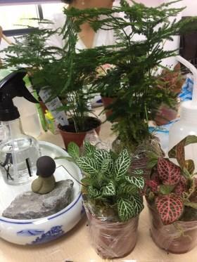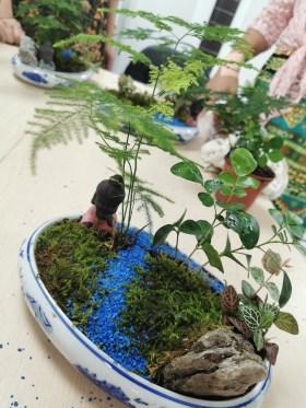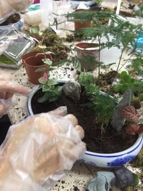 先将活动制作所需物品,如花盆、绿植、有机土等发放到每位参与者手中,老师一步一步带领大家进行绿植的种植及搭配,很快就完成了绿植的装盆及装饰。