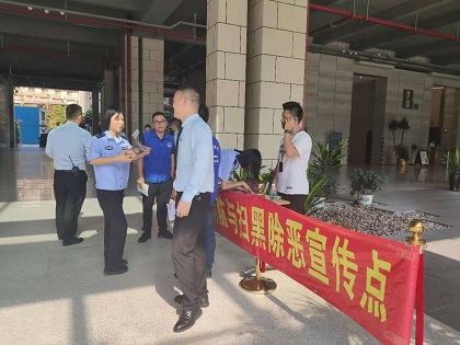 罗湖区家园网讯:为深入贯彻落实党的十九大部署和习近平总书记重要指示精神,保障人民安居乐业、社会安定有序、国家长治久安,8月8日绿景社区工作站联合东晓派出所在海关小区开展扫黑除恶的专项学习宣传活动,让社区居民朋友认识到扫黑除恶基本原则、总体要求和重点对象,把扫黑除恶与反腐败斗争和基层“拍蝇”结合起来,深挖黑恶势力“保护伞”。让居民意识到扫黑险恶的重要性,同时动员全民群防群治,共同打击黑恶势力,营造真善美的社会风气。