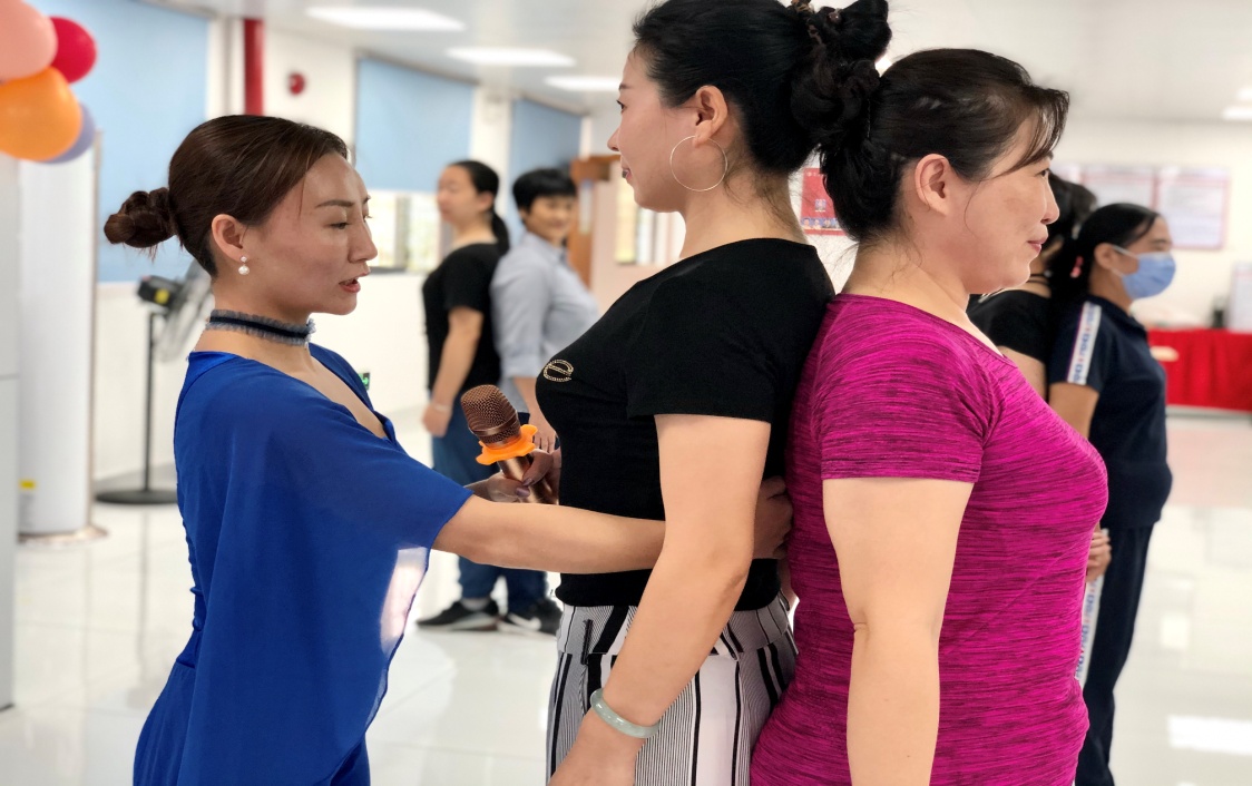 活动邀请了国家高级形体仪态教练、高级商务礼仪认证培训师欧文婉老师。第一节内容是学习站姿和打造天鹅美颈。在老师的讲解及示范下,居民学员练习基础站姿训练、拉伸颈部线条、消除双下巴训练等,积极和老师学习互动,纠正自己错误的站姿,让自己塑造优美形体,提升自己的气质形象。
