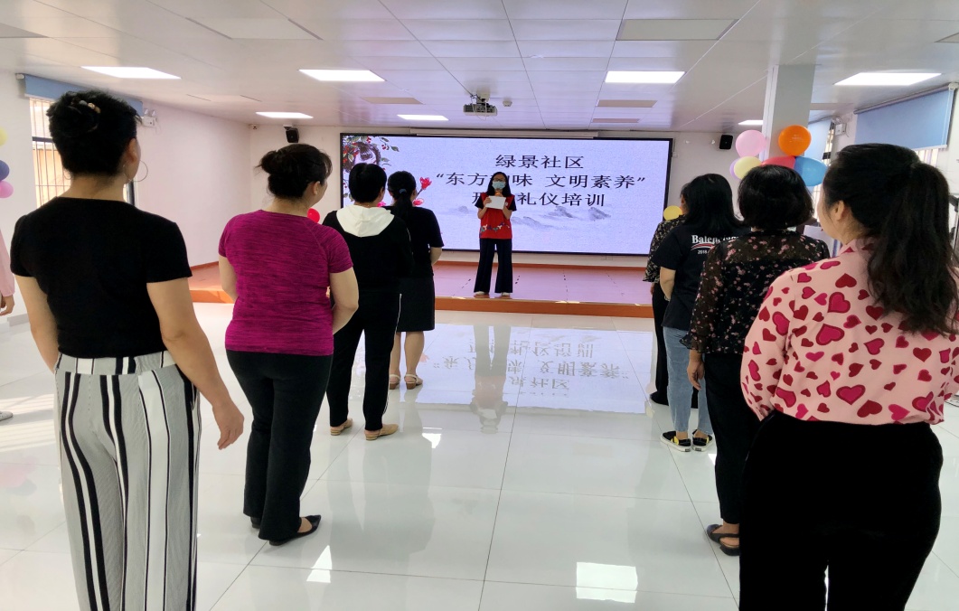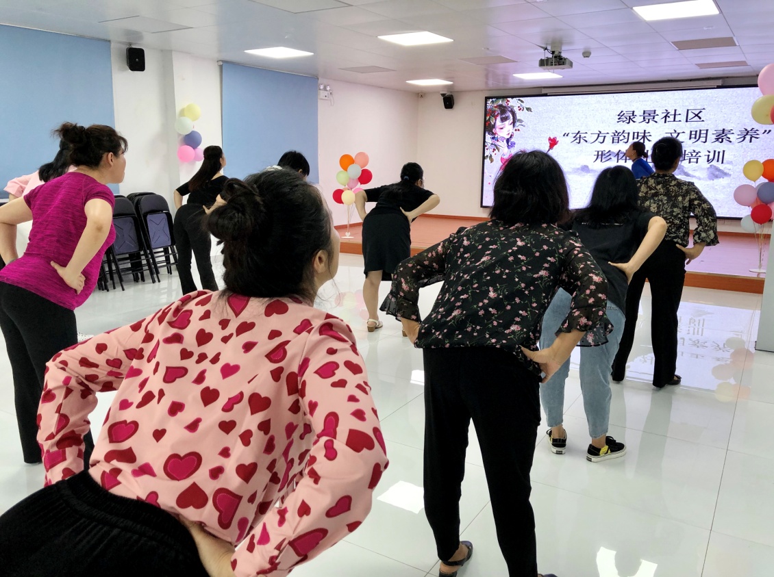 良好的形体能充分展示女性优美的身姿和流畅的线条,有利于提高女性的文明素养和艺术修养。为丰富社区女性的业余生活,进一步提升社区女性的气质形象,展现个人优雅之美、自信之美。2020年10月23日上午,绿景社区党委、妇女儿童之家联合绿景社区党群服务中心彩虹社工在绿景社区党群服务中心三楼开展了“东方韵味 文明素养”形体礼仪培训,共有近30名社区女性参加。
