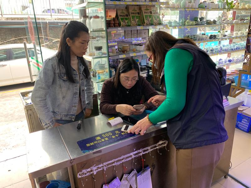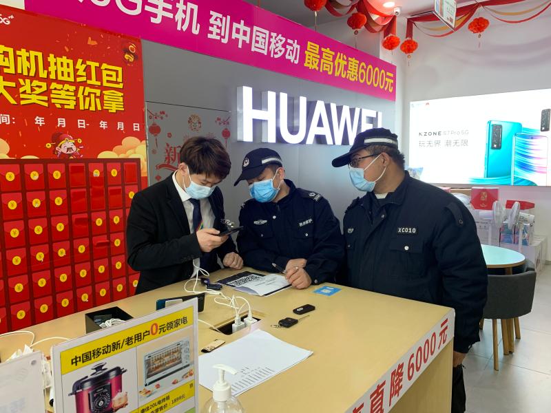 2022年2月23日绿景社区安全专干,在辖区对“三小”场所对负责人的行程码进行检查。
