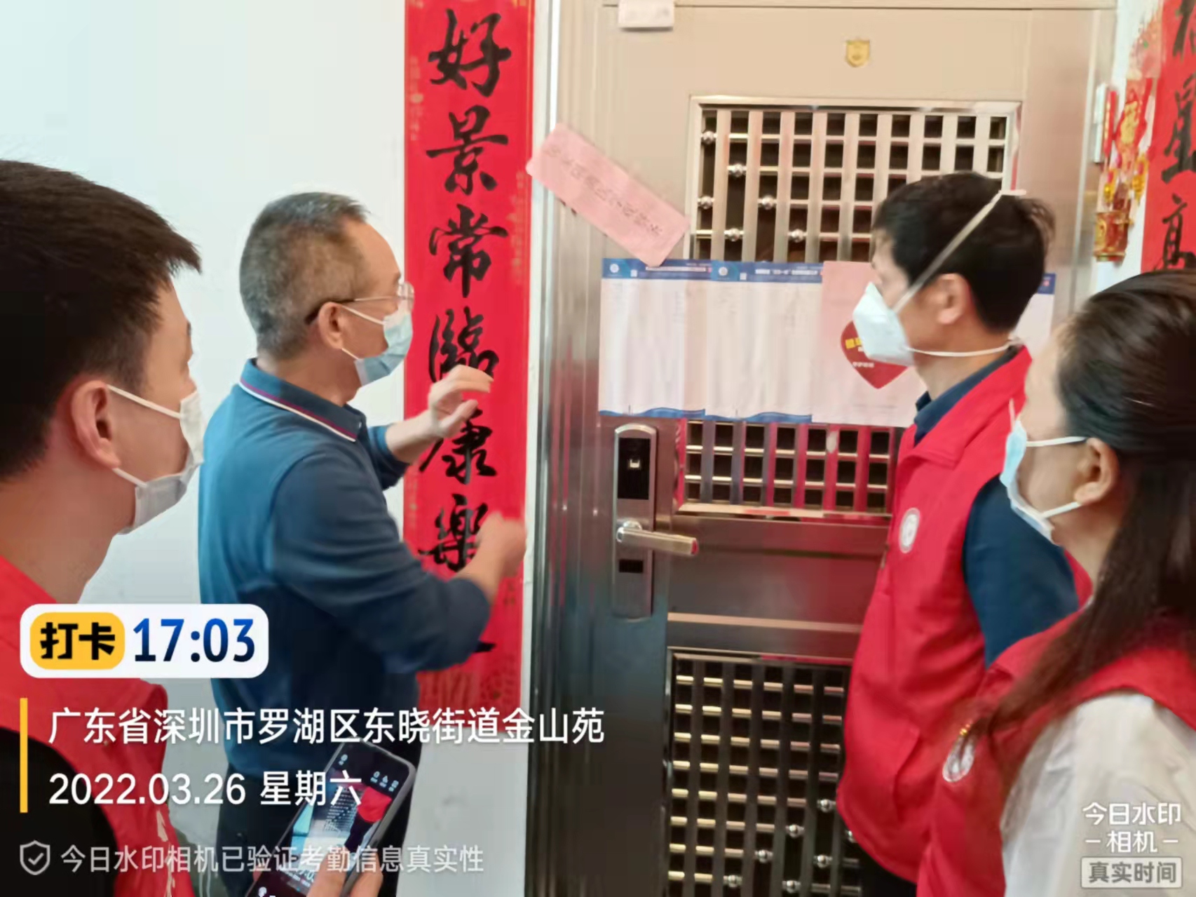 2022年3月26日,东晓街道党工委副书记、人大工委主任刘晓春,街道党工委委员、党政综合办公室主任绿景社区第一书记陈彦群,绿景社区社区书记李静及社区专干,到绿景社区查看居家隔离户情况。