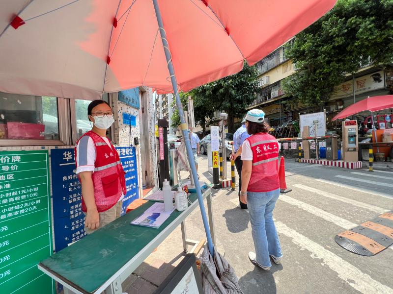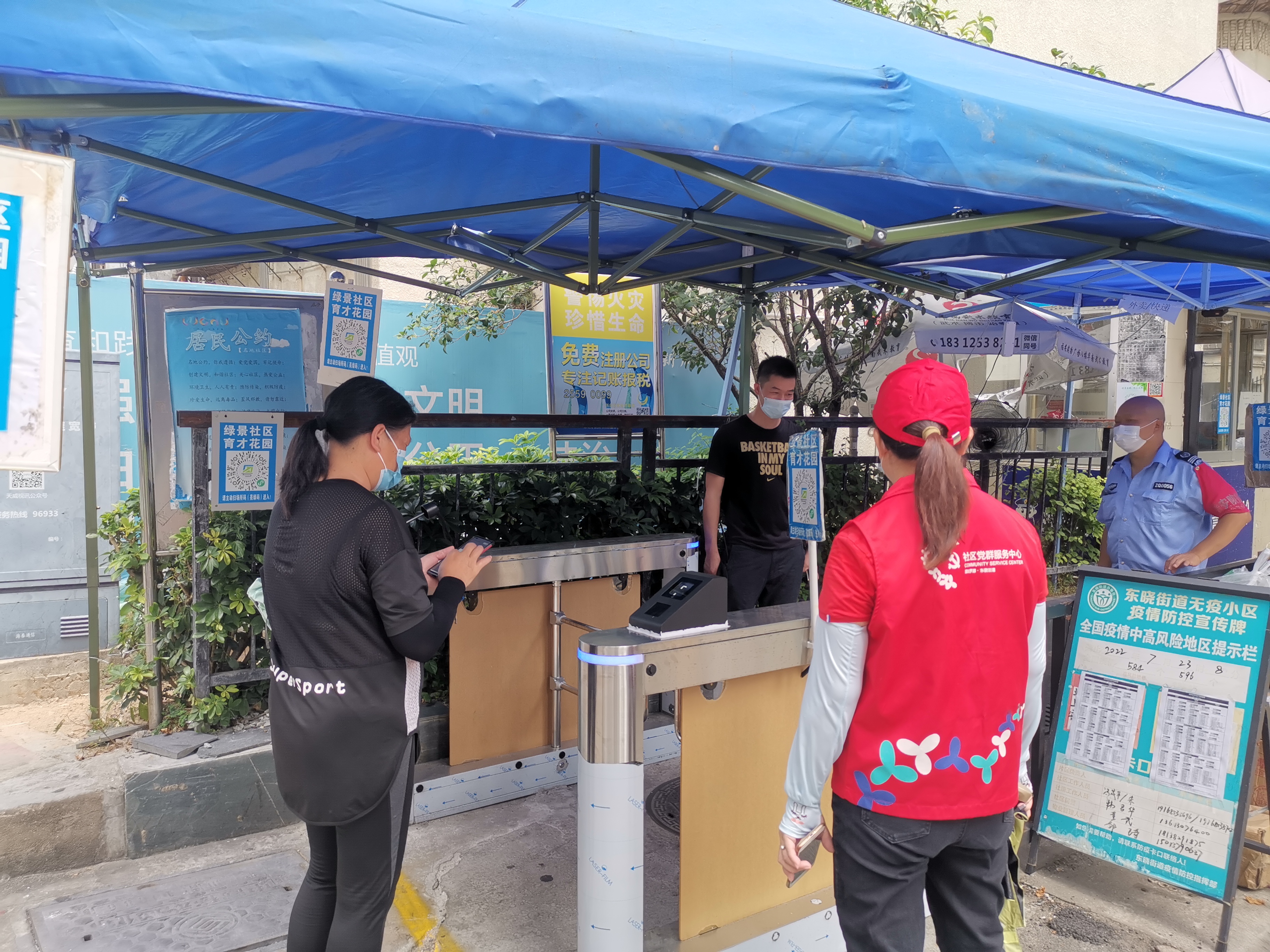 2022年7月24日,绿景社区对辖区小区卡口进行巡查,查看卡口值班人员是否严格落实疫情防控要求。