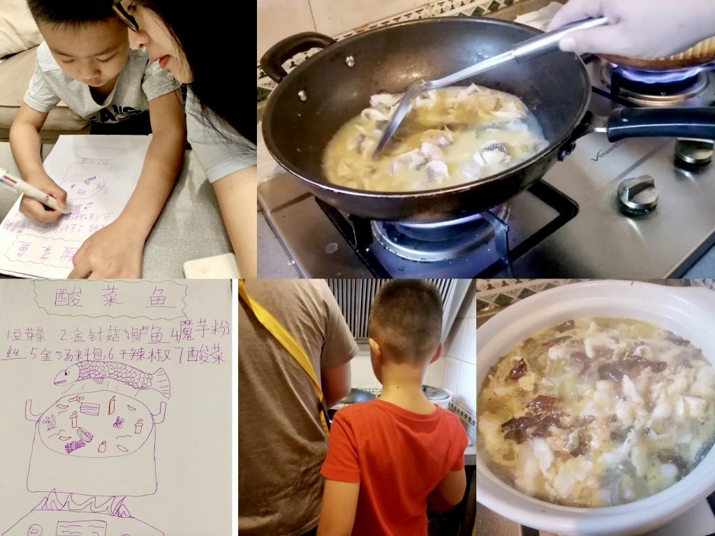 活动开始,社工给亲子发布亲子任务,任务设置有制作材料清单、精打细算、洗刷刷、你说我做、分享心得等环节。就在这悠闲欢快的气氛中,亲子们纷纷晒出了制作过程及成品,相互学习。一道道美食在亲子们的共同合作下陆续出炉:芝士烤吐司、烤肉煎蛋三明治、八宝粥、西红柿炒鸡蛋、酸菜鱼、青菜汤面、水果沙、椰汁西米露、红薯糯米糍、蛋挞、珍珠奶茶、咖喱牛腩、烤肉、炒面......每一道美食都凝聚了孩子和家长的情感,同时也记录了亲子共同劳作的欢乐时光。7 [% z, C0 |* G