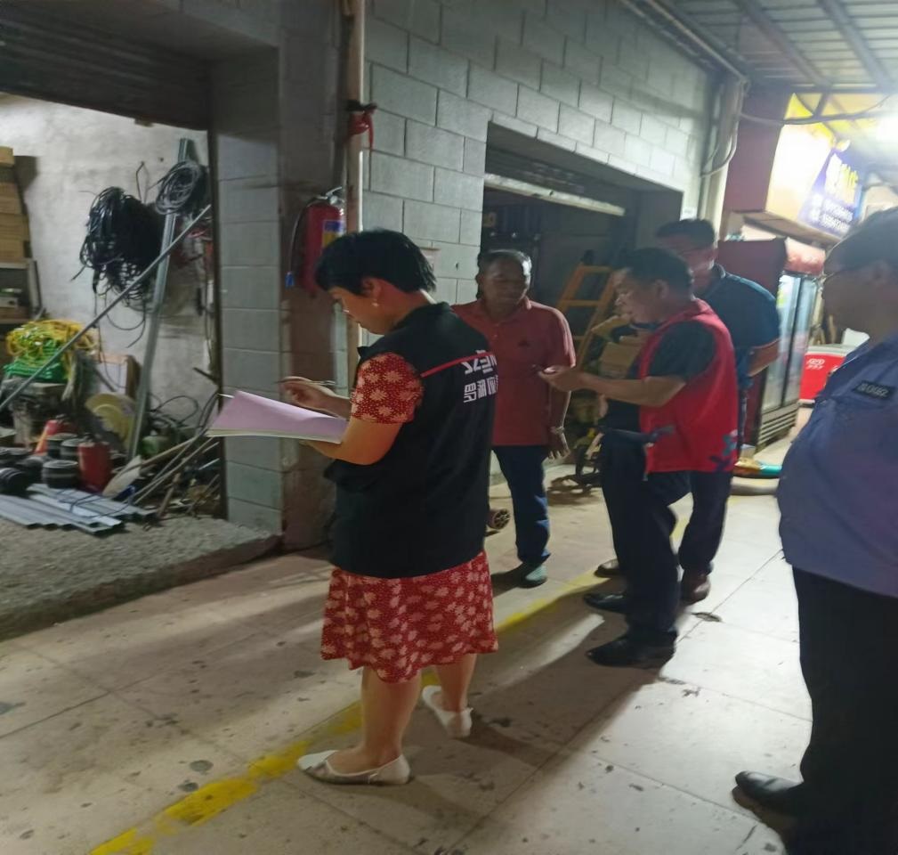 7月10日晚,办事处副主任段伟奇率队,绿景社区党委书记李静、社区网格长、街道应急办、围岭消防站以及置富公寓管理处一行,前往置富公寓三小门店开展安全夜查行动。重点检查小区楼道是否堆放杂物、小区充电桩设施是否完好、三小门店是否违规住人、消防器材是否正常使用等。检查发现1处拉线违规充电、1处灭火器摆放不合理,均已要求相关单位立即整改。同时,段主任要求物业公司落实安全主体责任,对楼道、充电桩、三小门店加强巡查,确保小区平安稳定。