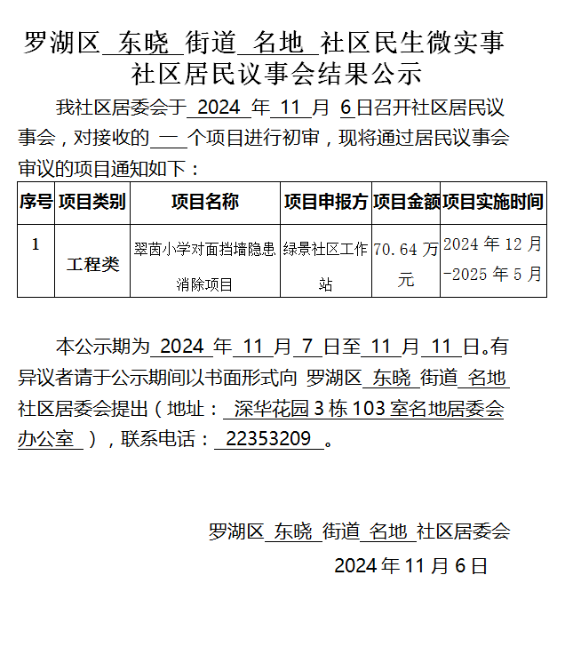 东晓街道名地社居委会民生微实事社区居民议事会结果公示