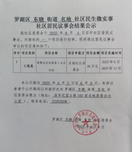 东晓街道名地社居委会民生微实事社区居民议事会结果公示