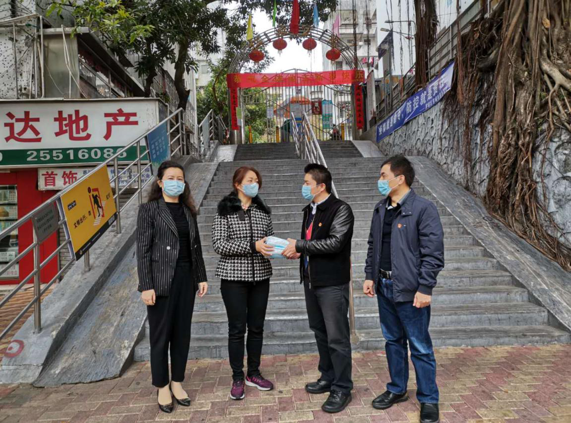 在巡查中,社区党委向吴常委反映目前物业企业、复工企业、党员居民宣传时都紧缺口罩。随后,吴常委与中国致公党深圳市委会妇女委员会深圳京基地产区域总经理吴海屏吴经理一起给社区送来口罩支援社区防控工作