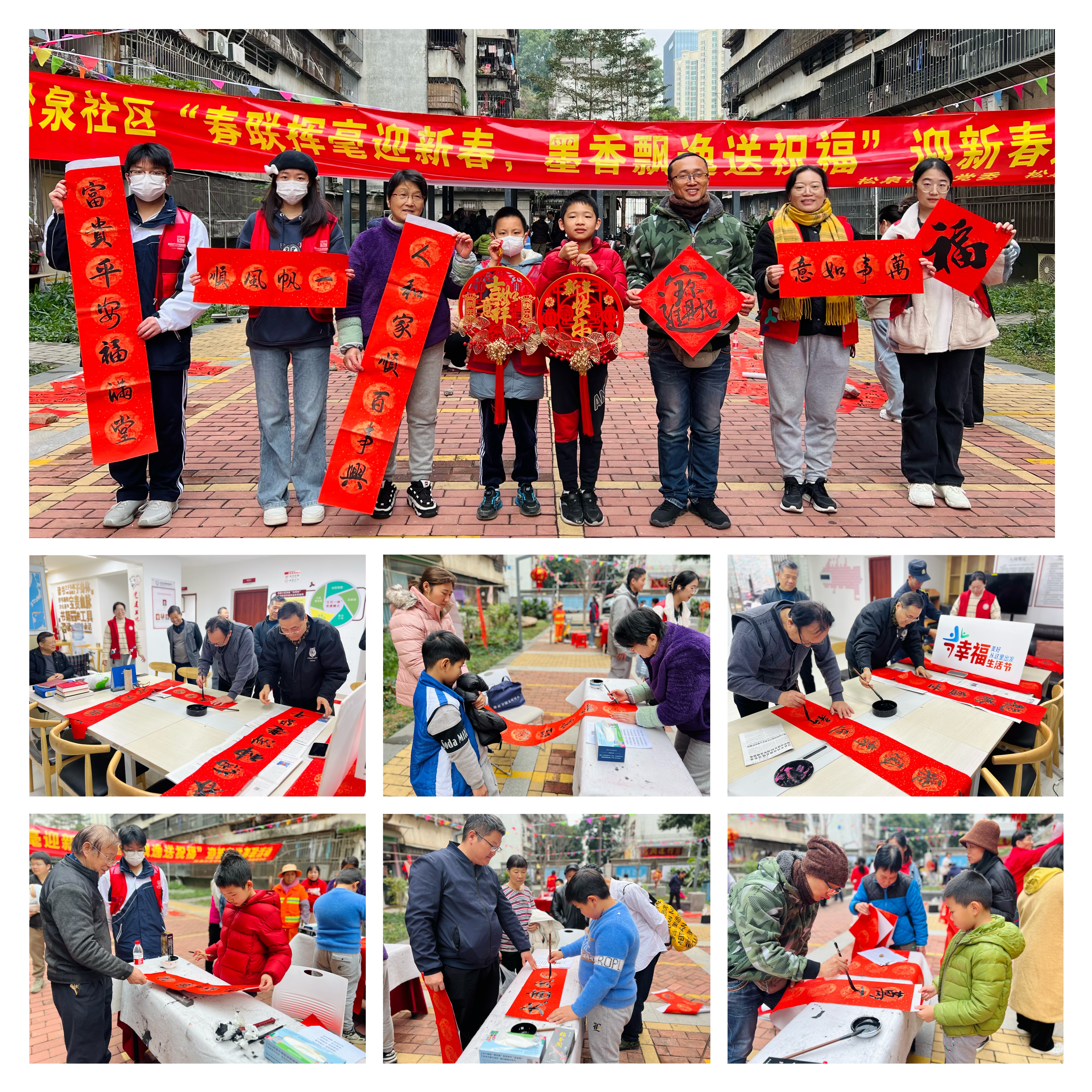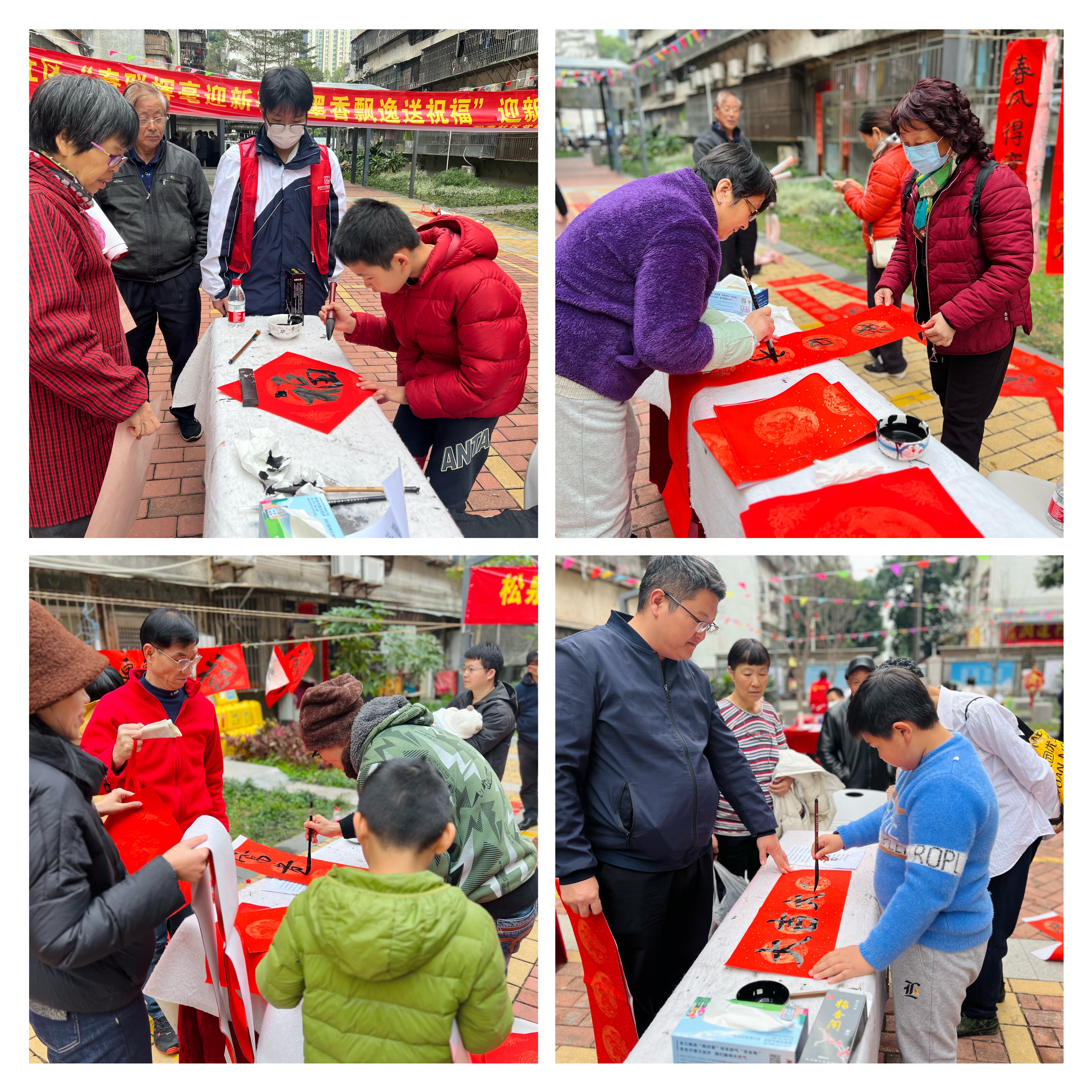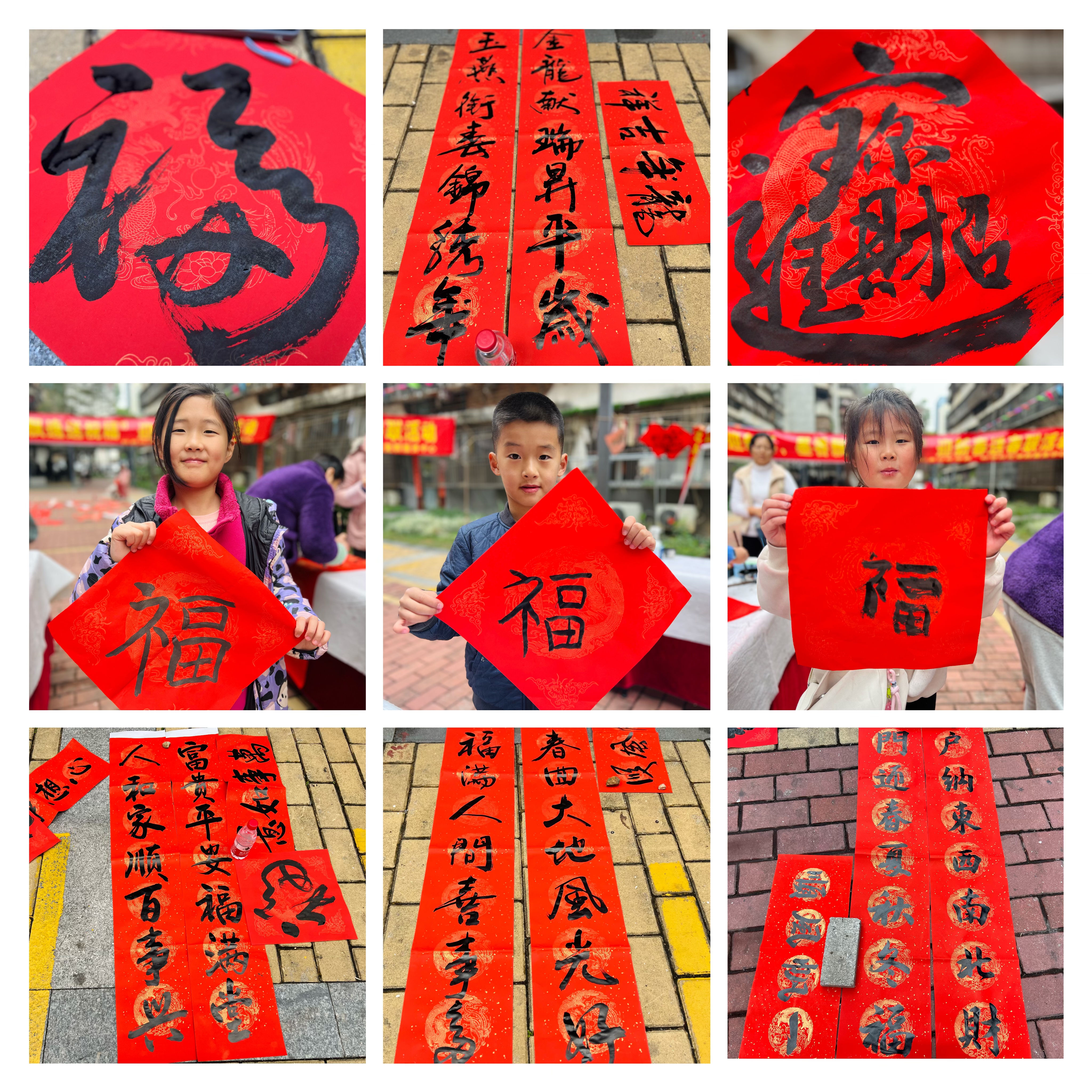 罗湖家园网讯:笔墨承祝福,挥春展新愿。新春佳节来临之际,为营造喜庆祥和的节日氛围,弘扬中华民族传统文化,2024年1月28日下午,松泉社区党委、松泉社区党群服务中心开展“春联挥毫迎新春,墨香飘逸送祝福”迎新春送春联活动,300余名居民参与其中。