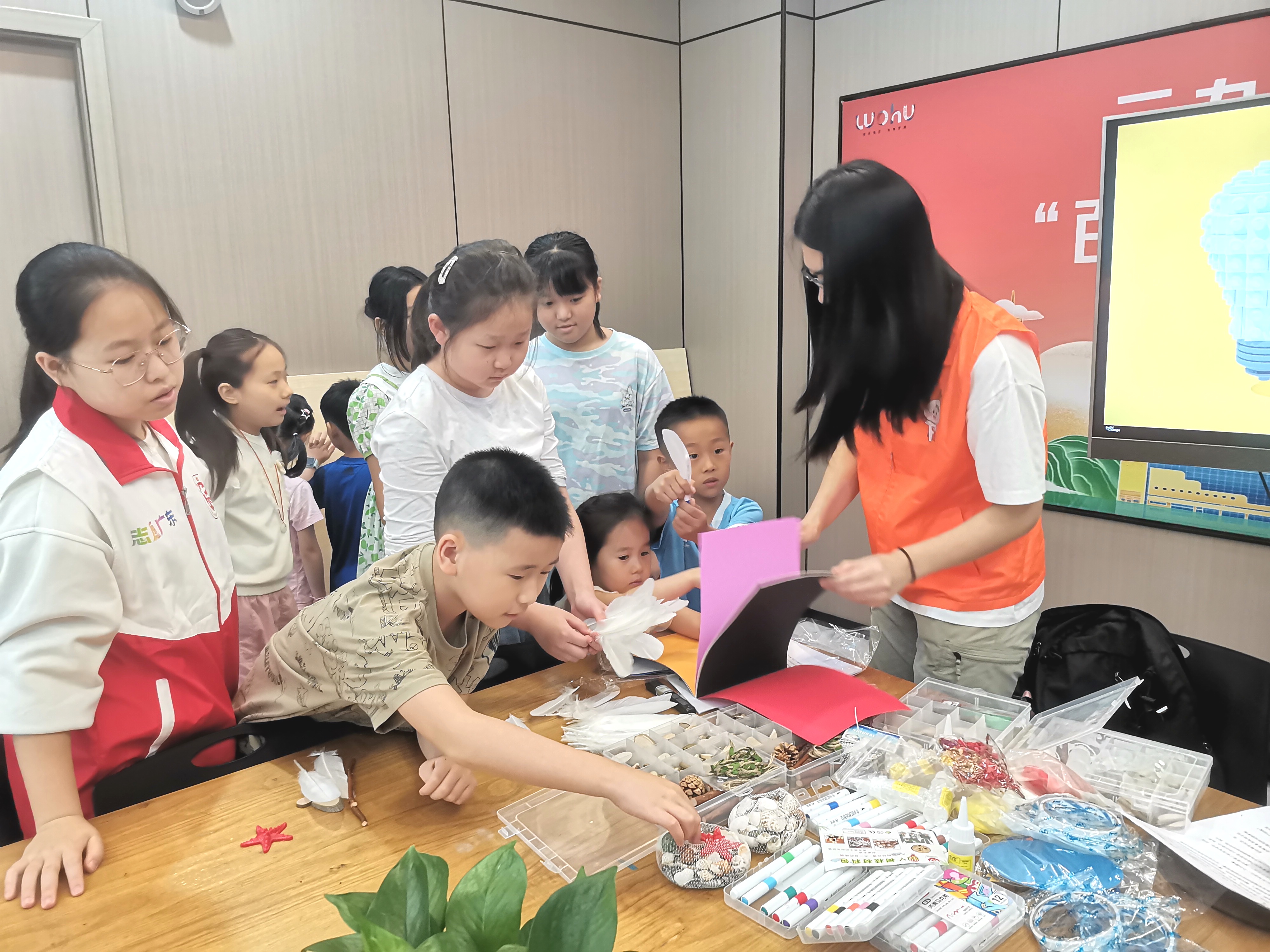活动现场,未保社工化身为环保知识使者,借助精美的图片、形象的动画视频,深入浅出地讲解了世界地球日的起源、发展历程以及地球当前面临的环境问题,如全球气候变暖、森林锐减、海洋污染等。通过这次讲解,青少年们对世界地球日有了更深刻的认识,也明白了保护地球环境的重要性。紧接着进入充满创意与乐趣的手工制作环节,工作人员提前准备好了干花、贝壳、羽毛、树枝等丰富多样的材料,这些材料在活动现场散发着自然的气息,仿佛在等待着被赋予新的生命。在工作人员和志愿者的耐心指导下,青少年们纷纷化身为“小小艺术家”,开始发挥自己的无限创意。有的孩子用干花和树枝巧妙搭配,制作出了一幅幅充满田园风光的立体画,干花的芬芳与树枝的质朴相得益彰;有的孩子发挥想象,用贝壳和羽毛制作出了形态各异的风铃和扇子;还有的孩子用树枝和麻绳编织出了实用又美观的装饰画等作品,每一个作品都展现出孩子们独特的想象力和创造力。晓璇表示:“废弃的材料竟然能制作这么好看的手工作品,我以后要多留意身体不用的材料,将其变废为宝”。