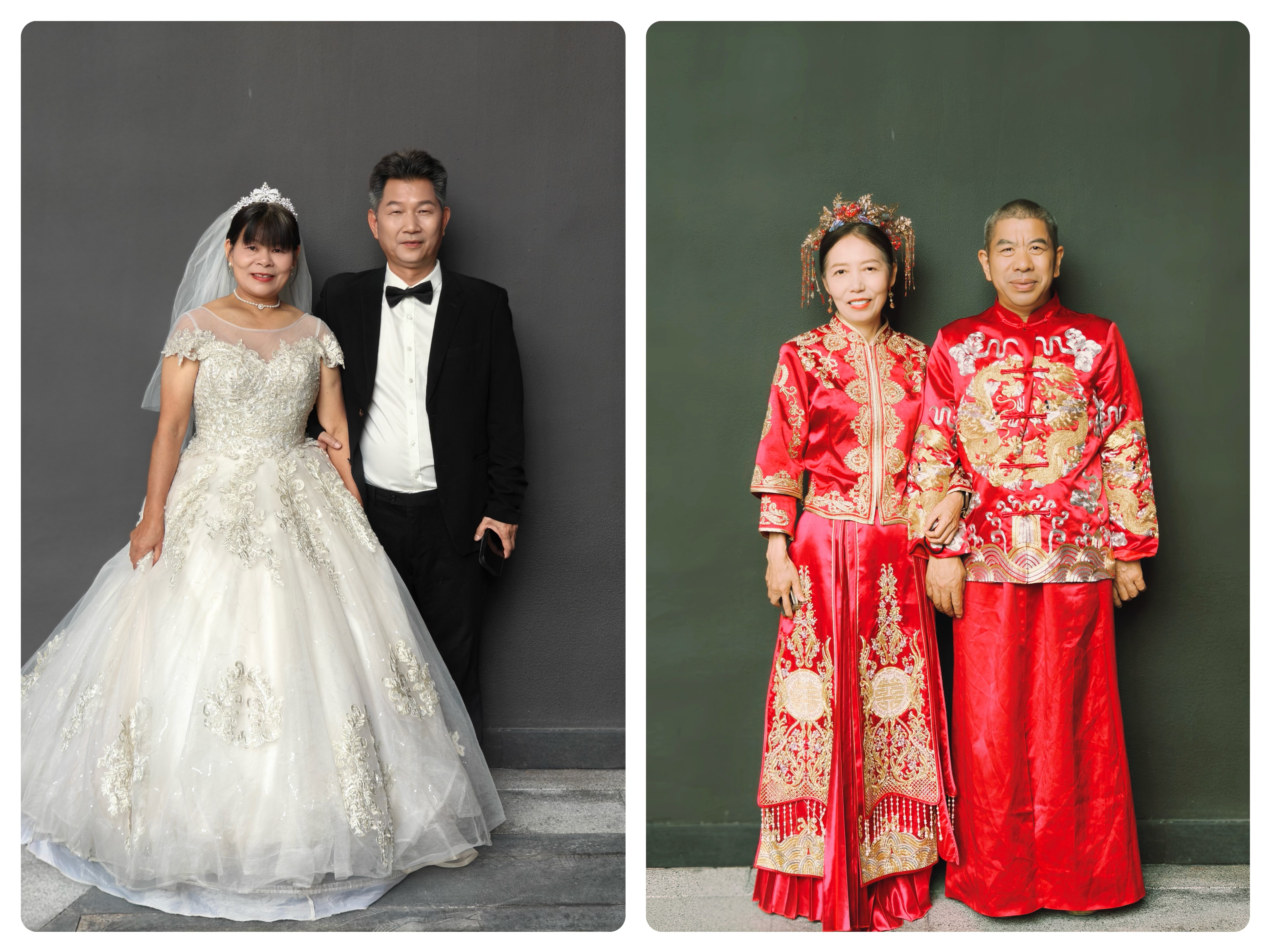 活动现场,专业摄影团队以匠心打造沉浸式拍摄体验。从复古雅致的民国风旗袍,到雍容华贵的中式龙凤褂,多款精美服饰琳琅满目;古色古香的庭院小径、布置温馨的室内场景,多款线上定制场景任凭选择。每一处细节,都致力于为参与者重现怦然心动的瞬间。一对携手走过四十余载的老夫妻,换上华丽的中式礼服,在镜头前虽略显羞涩,眼神中却满含深情。他们感慨道:“年轻时忙着养家,连像样的结婚照都没有,没想到老了还能补上这份浪漫,真的很感谢社区!”他们的话语,道出了许多参与者的心声。
