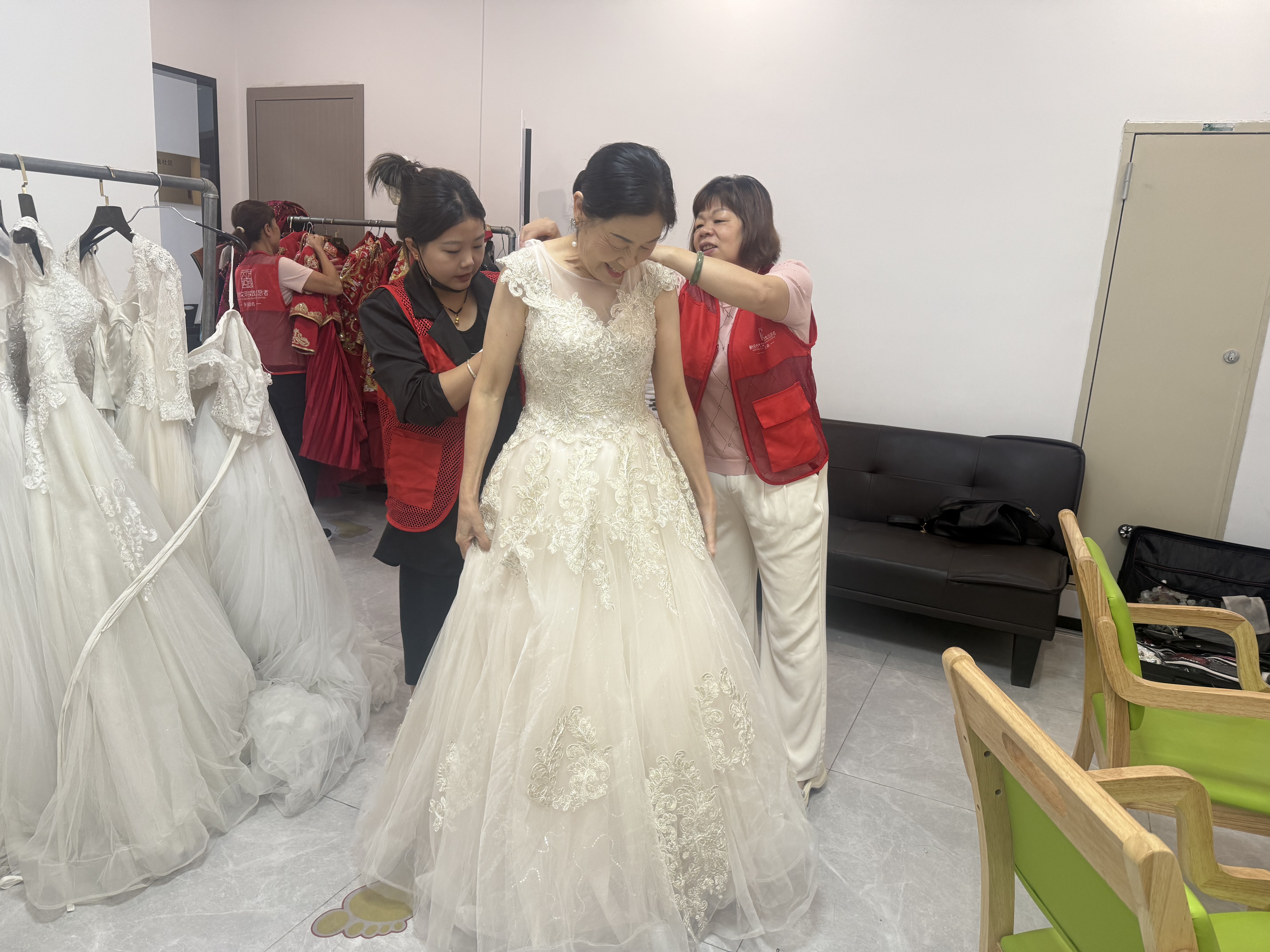 除此之外,此次活动还创新探索了社区治理新模式。通过招募能人志愿者担任造型助理、发动公益企业赞助拍摄道具,婚纱圆梦计划成为多方参与的共建平台。这种“党建引领+公益服务+居民自治”的模式,有效凝聚了社区向心力,为基层治理注入温暖与活力。