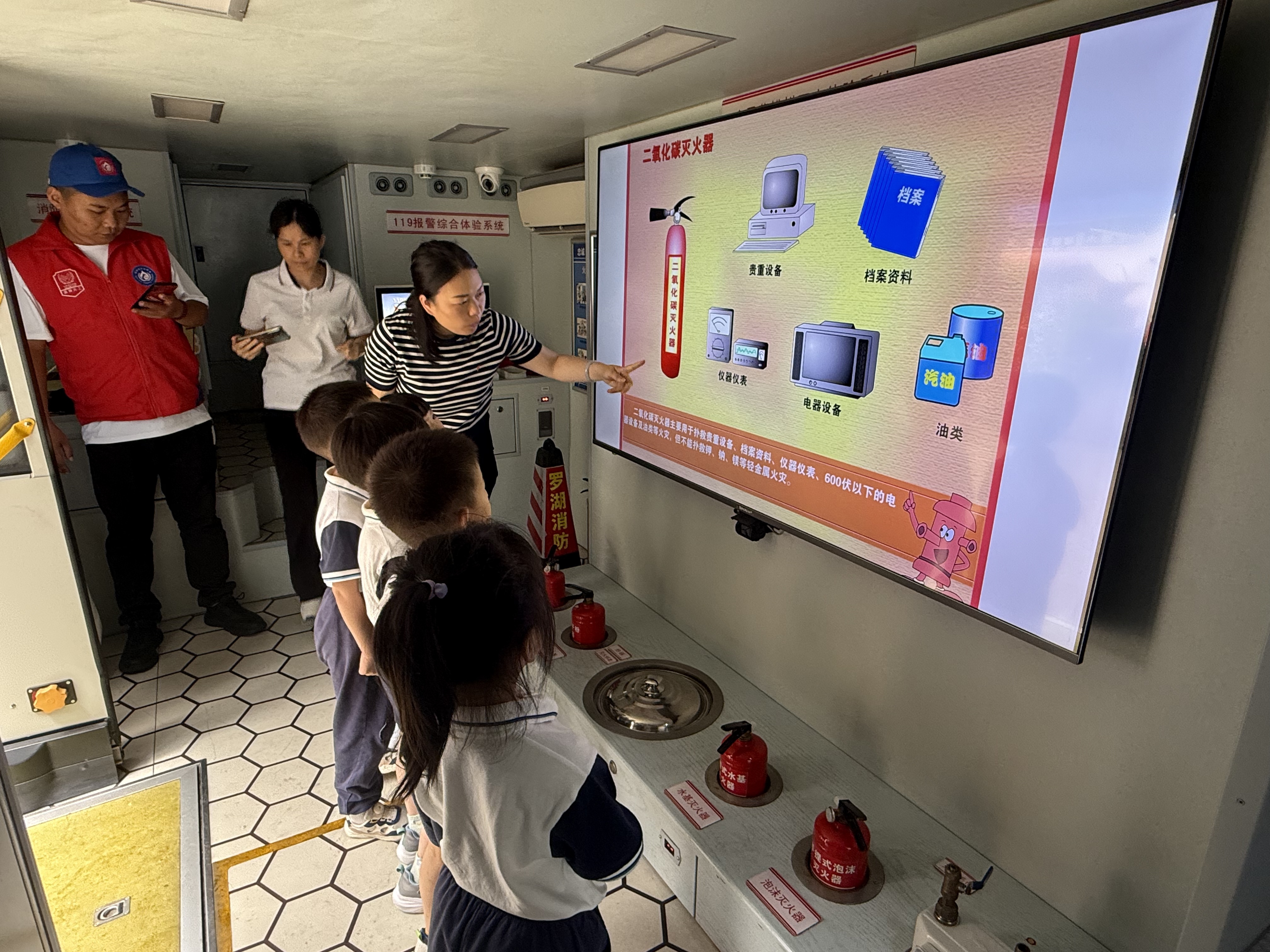 活动伊始,专业讲解员登上巴士,用生动形象的语言和活泼有趣的互动方式,为孩子们开启了消防安全知识的大门。讲解员从火灾的成因、危害讲起,深入浅出地介绍了日常生活中常见的火灾隐患,如电线老化、乱扔烟头、易燃物品堆放不当等,并教导孩子们如何及时发现和消除这些隐患。孩子们听得聚精会神,不时举手提问,讲解员都耐心地一一解答,现场气氛热烈而活跃。