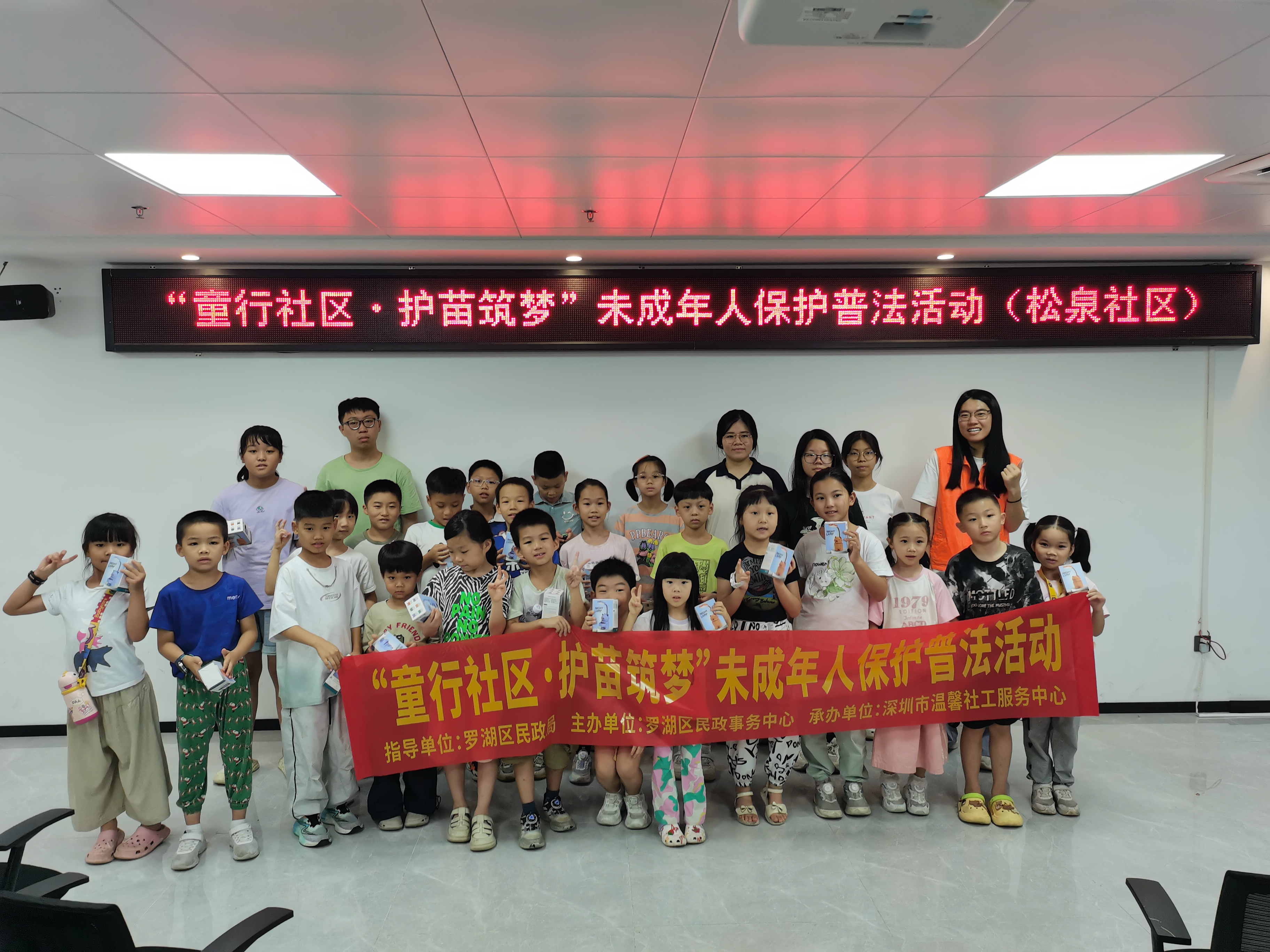 罗湖家园网讯:暑期来临,为筑牢未成年人安全防线,深入推进“百千万工程”,2025年7月25日,松泉社区联合深圳市罗湖区民政事务中心、深圳市温馨社工服务中心、东晓街道未成年人保护工作站精心策划的“童行社区・护苗筑梦”未成年人保护普法活动热闹开启。此次活动摒弃传统说教模式,通过沉浸式体验与互动游戏,让孩子们在欢乐中学习“五防”安全知识,将法律意识与自我保护技能深植心间,得到了25名小朋友积极参与。