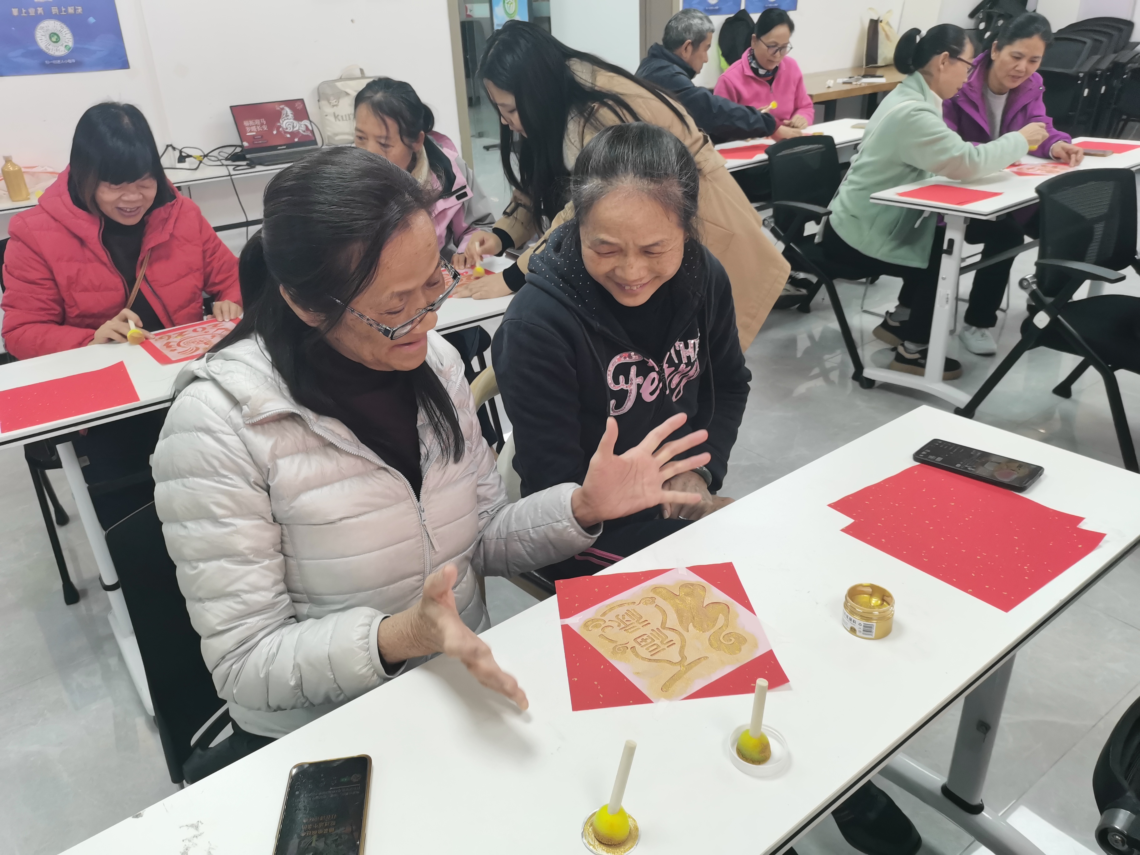 罗湖家园网讯:为践行“百千万工程”民生服务要求,弘扬传统文化,营造浓厚新春氛围,1月23日,松泉社区党群服务中心携手温馨社工整合多方资源,为辖区老年人接连举办两场特色文化活动,让老人们在非遗体验与创意手作中迎接新春。