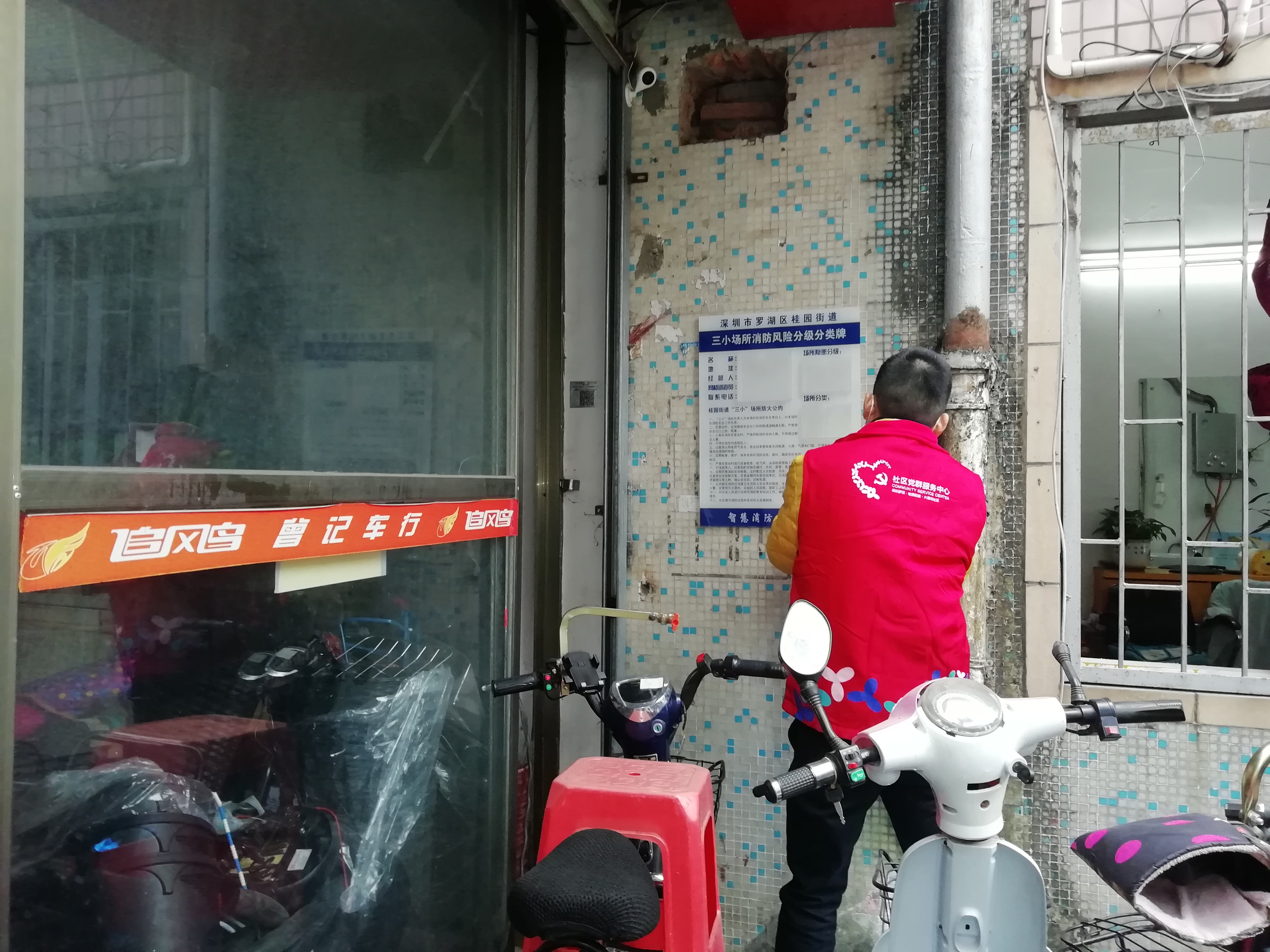大塘龙社区工作人员检查辖区消防安全